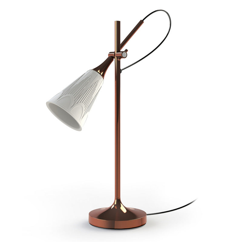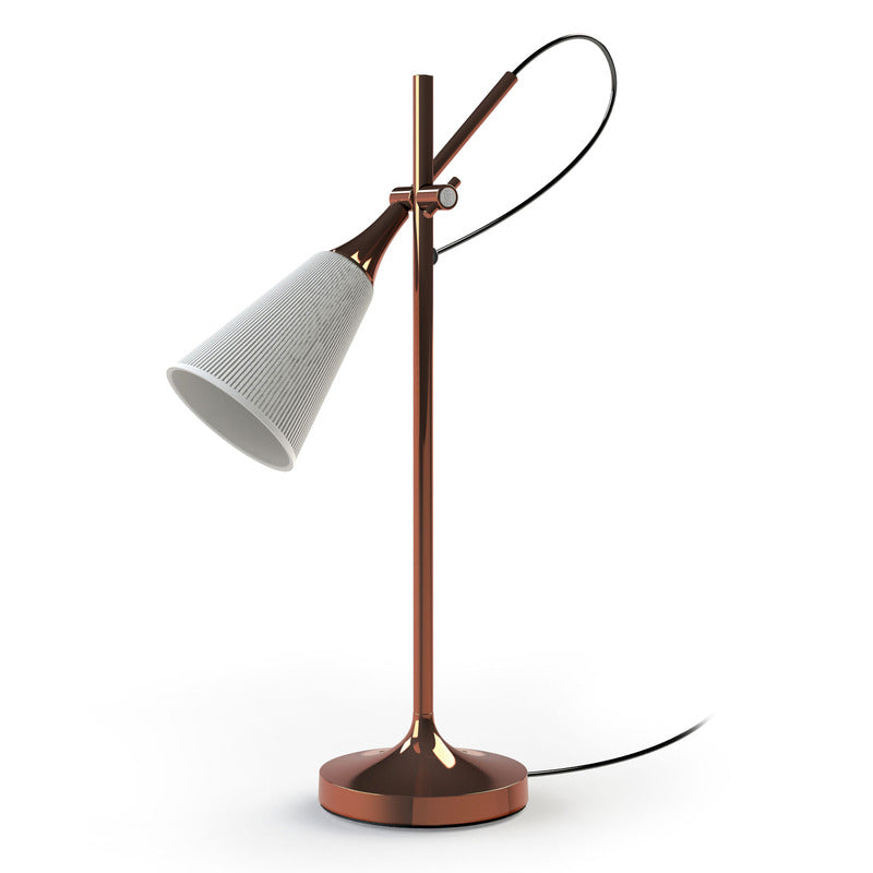 The Jamz collection has all the flavor of an era: the sound of jazz clubs, the forms inspired by art deco and the aroma of creativity, rhythm and vitality that characterized a few years of great personality. A unique selection of hanging, standing and reading lamps. The combination of brass and porcelain lithophones, with a choice of three different models, recalls the shape of the jazz instruments. The customization of the lamps symbolizes the free essence of this music, allowing improvisation for custom creations. Refined shape lamps in white porcelain with copper or black metals in which light and craftsmanship come together to create different atmospheres.