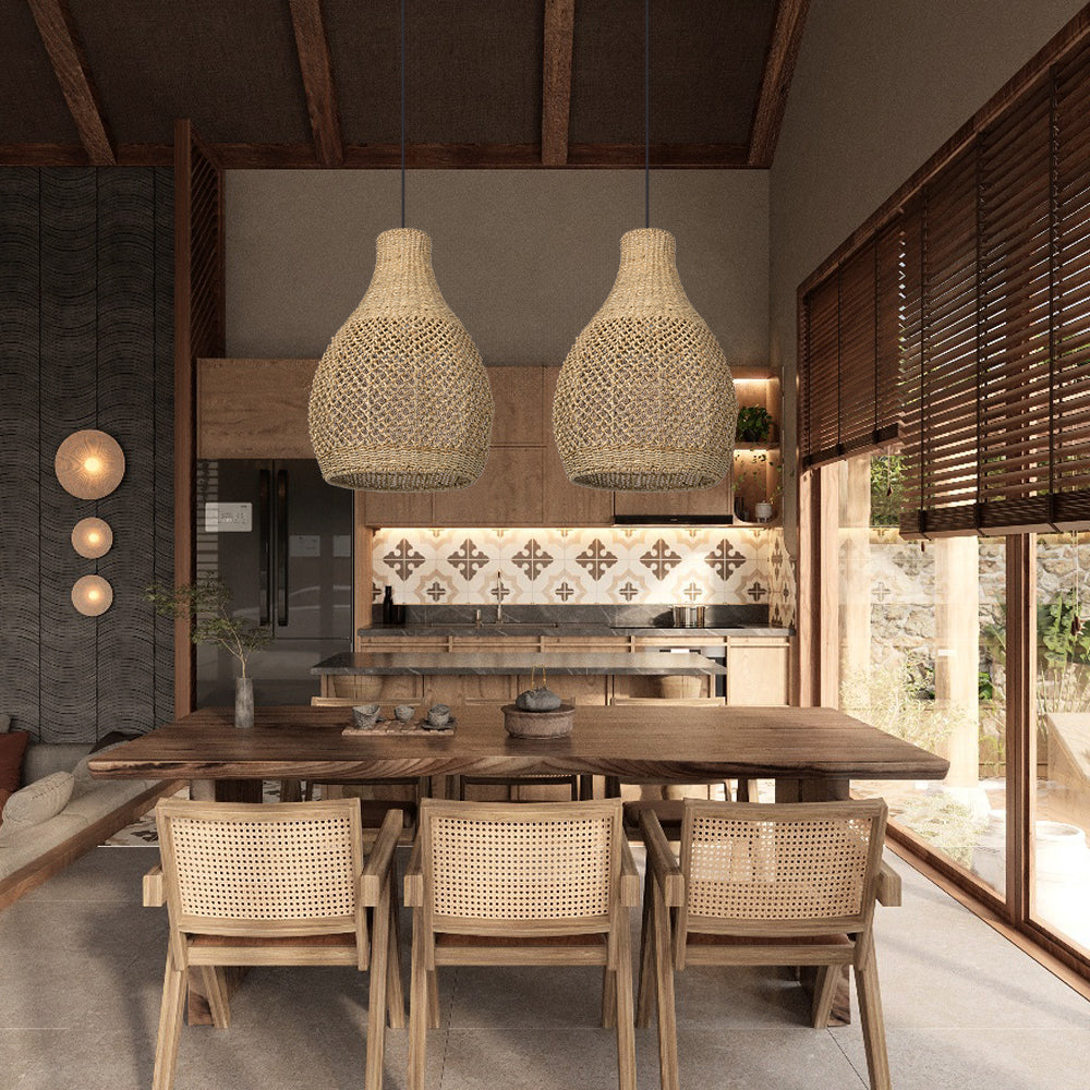 Kettle Style Hemp Rope Braided Handmade Pendant Light