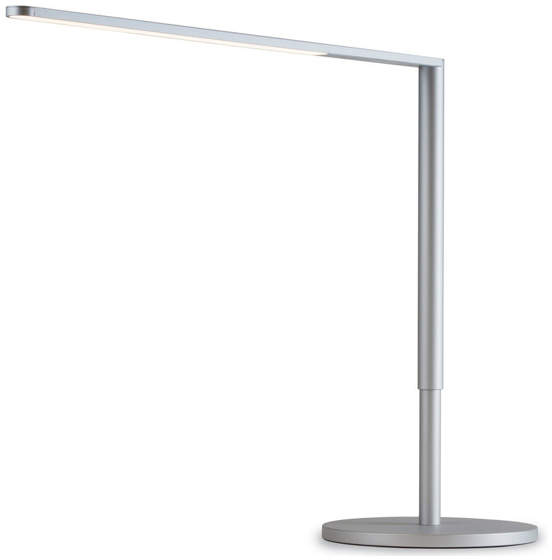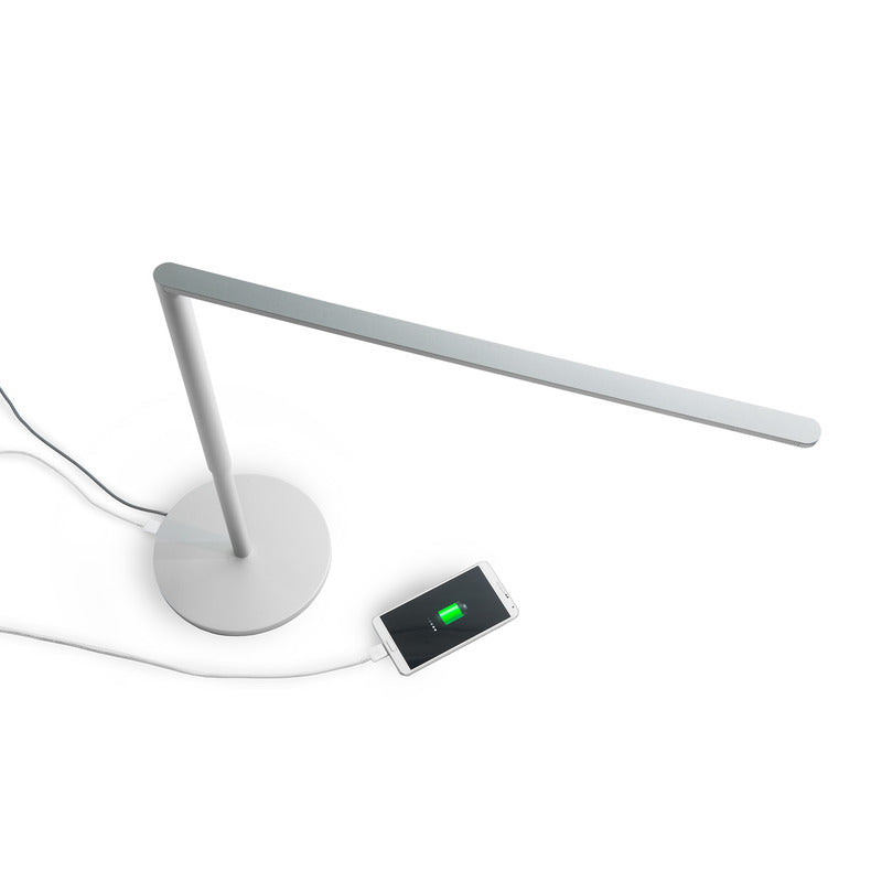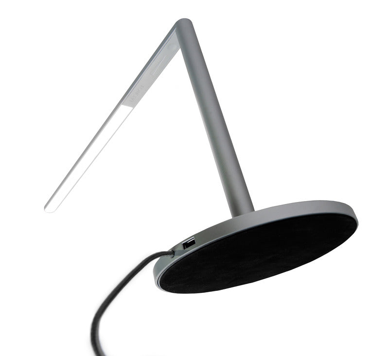 Lady7 is a fine and sexy minimalist. Designed with a wispy-thin silhouette, Lady7 provides a beautiful linear light source for your desk. Thanks to her cordless joint design and sleek, clean lines, Lady7 is perfect in any setting. Ultra efficient LEDs generate little heat and allow Lady7 to operate within safe temperatures & without the need for eyesore heat sink fins. With a USB charging port subtly integrated in the base, all components are housed inside a simple right-angled shape, keeping a clean silhouette that is easy on the eyes.