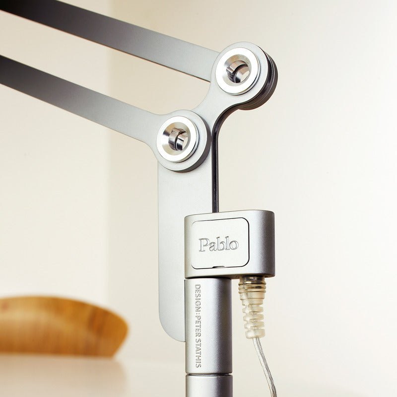 Designed by Peter Stathis in collaboration with Pablo Studio, Link modernizes the classic pantograph task lamp. This new articulation reduces the mechanical complexity of its 1937 referent and incorporates today's most advanced, energy-efficient LED technology. While honoring the pantograph concept, its design eliminates visible springs and wires in favor of a consolidated form in which shade and handle are fused together as one. In this way, Link seamlessly balances performance and style to meet the focused lighting needs of any space.