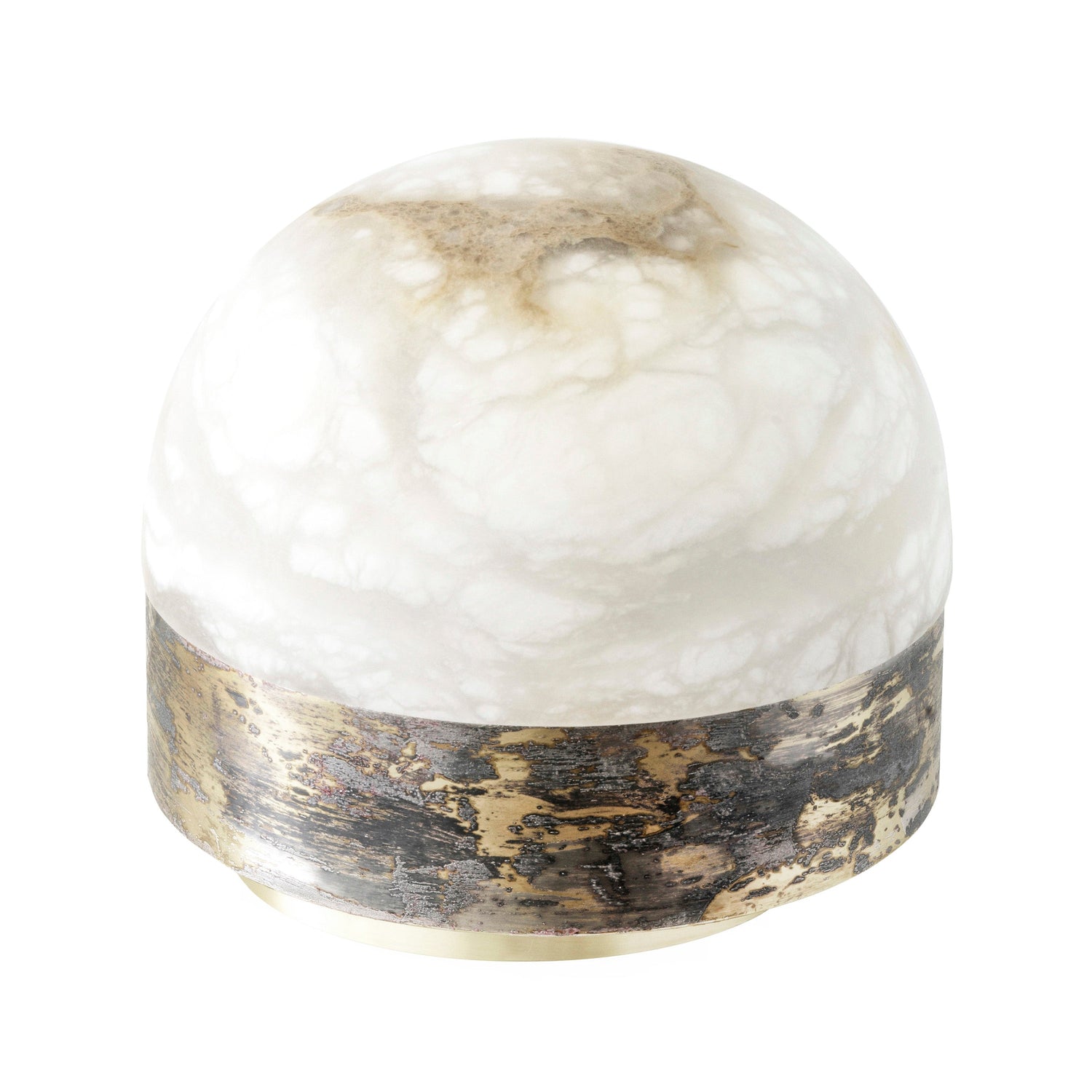 Designed by Michael Verheyden, the Lucid collection was inspired by Parisien Brasseries and snowdomes. Both functional and sculptural the light celebrates premium materials, honed alabaster, satin brass together with silvered brass finishes using oxidised silvered brass. CTO worked with a small silversmith to experiment with new finishes and discovered a textured finish using brass, silver and oxidised silver.