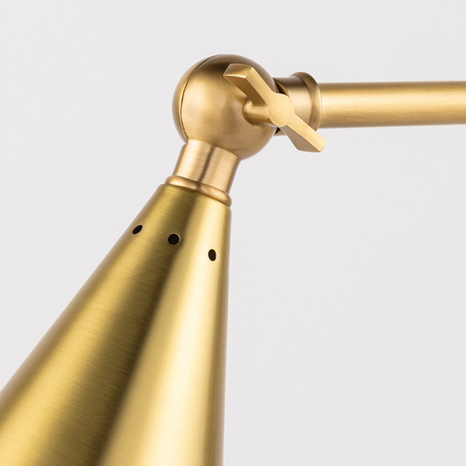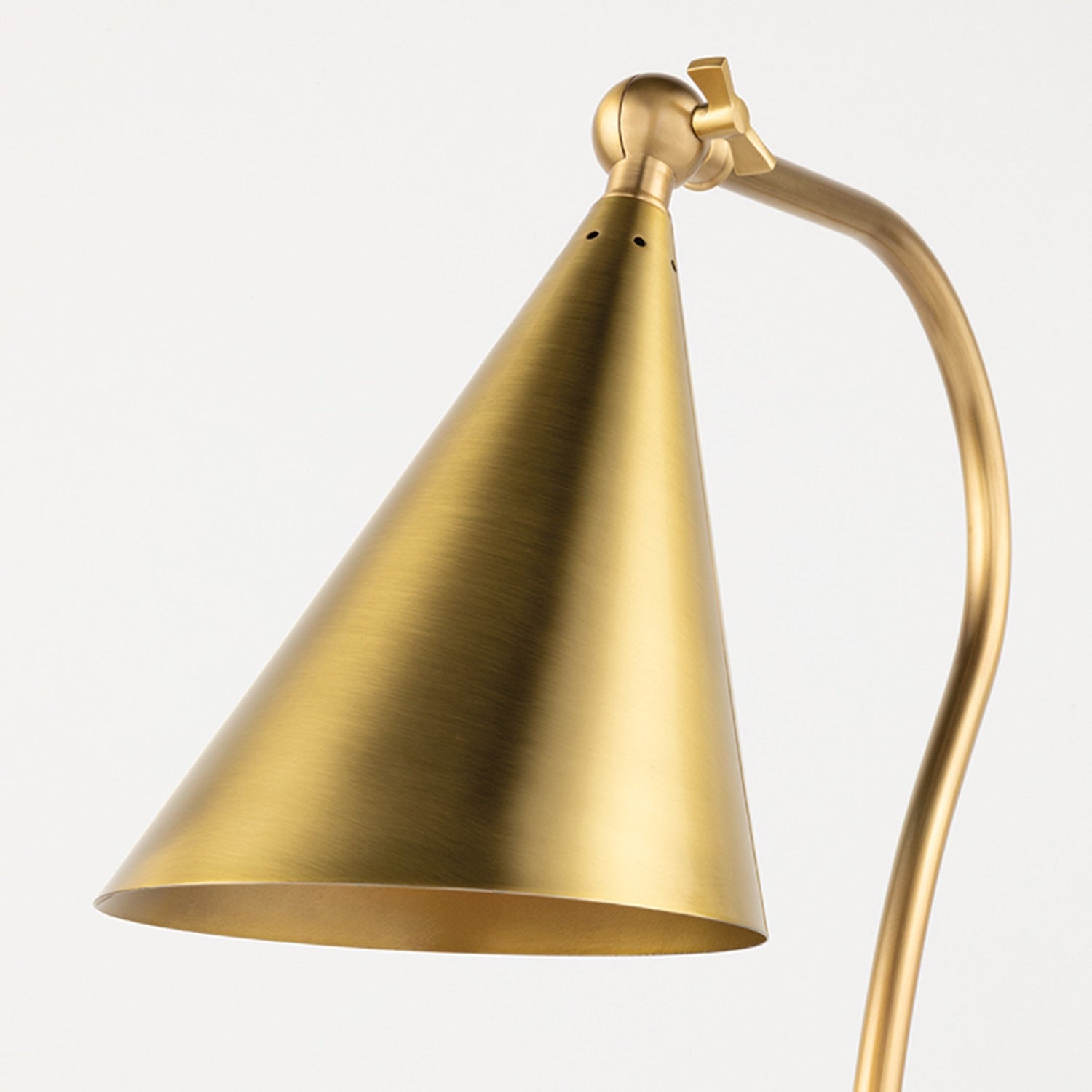 Lupe is a seamless hybrid of industrial, midcentury-modern, and traditional influences. A perforated shade has the couture look of a bias-cut, like a spotlight hitting the stage. Its bowtie swivel key is as functional as it is stylish.