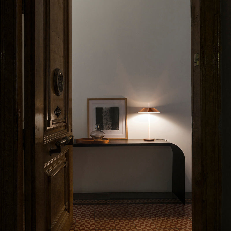 Vibia manufactures the table lamp in six different finishes. Can be dimmed via an optical sensor.