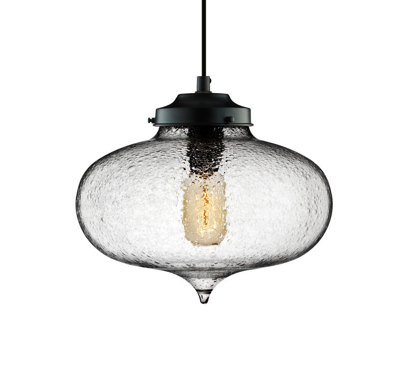 Born from the intricacies of Moorish architecture, the seductive Minaret features a hand-pulled tear-drop shape that reflects refined beauty. Every single glass pendant light that comes from Niche is hand-blown by real human beings in a state-of-the-art studio located in Beacon, New York. Their team of experienced glass artisans takes great care in delivering products made from the finest materials in the world with the highest standards of craftsmanship in mind. All pendants are sold with the following components and are ready for hard wire ceiling installation: Glass fixture, standard incandescent bulb (as pictured), 5 inch black ceiling canopy, and 4 foot black cord set.