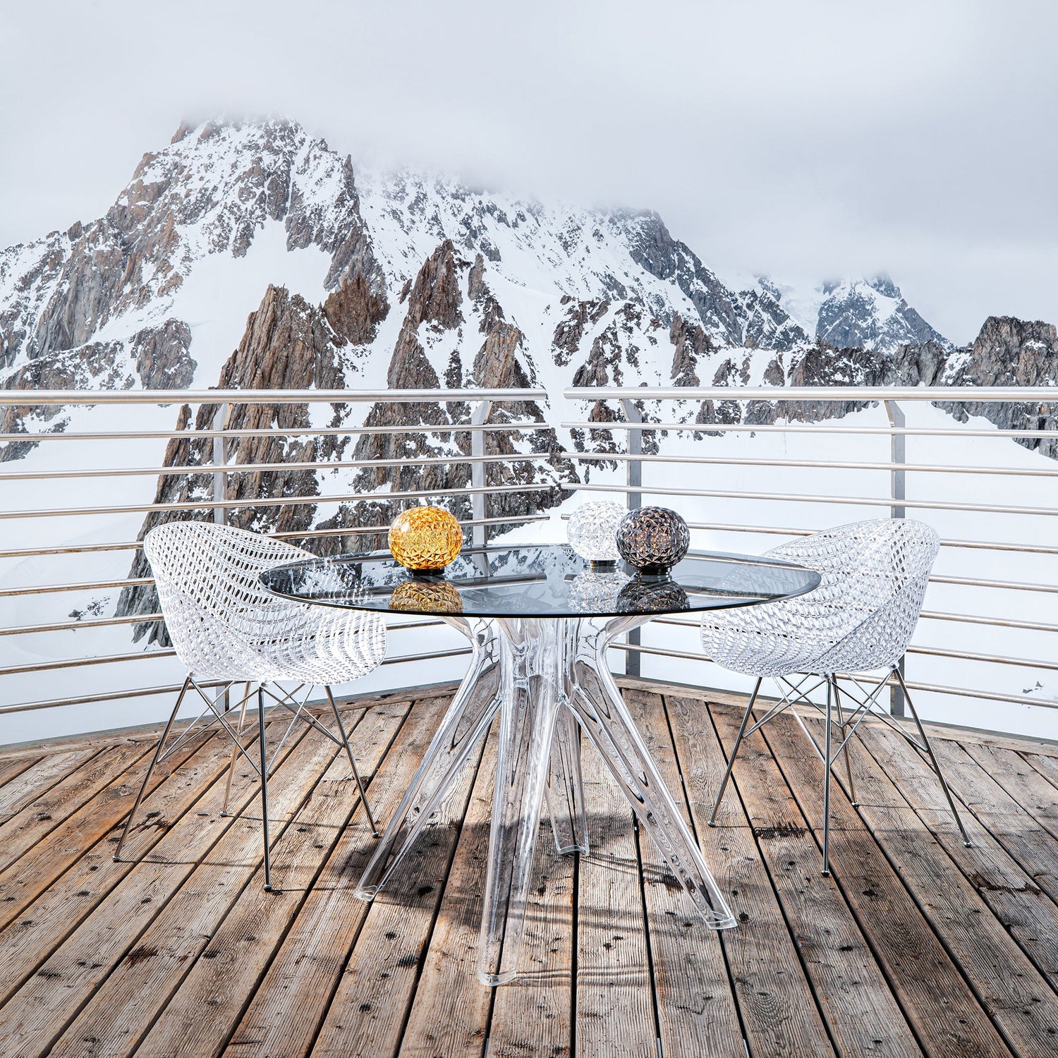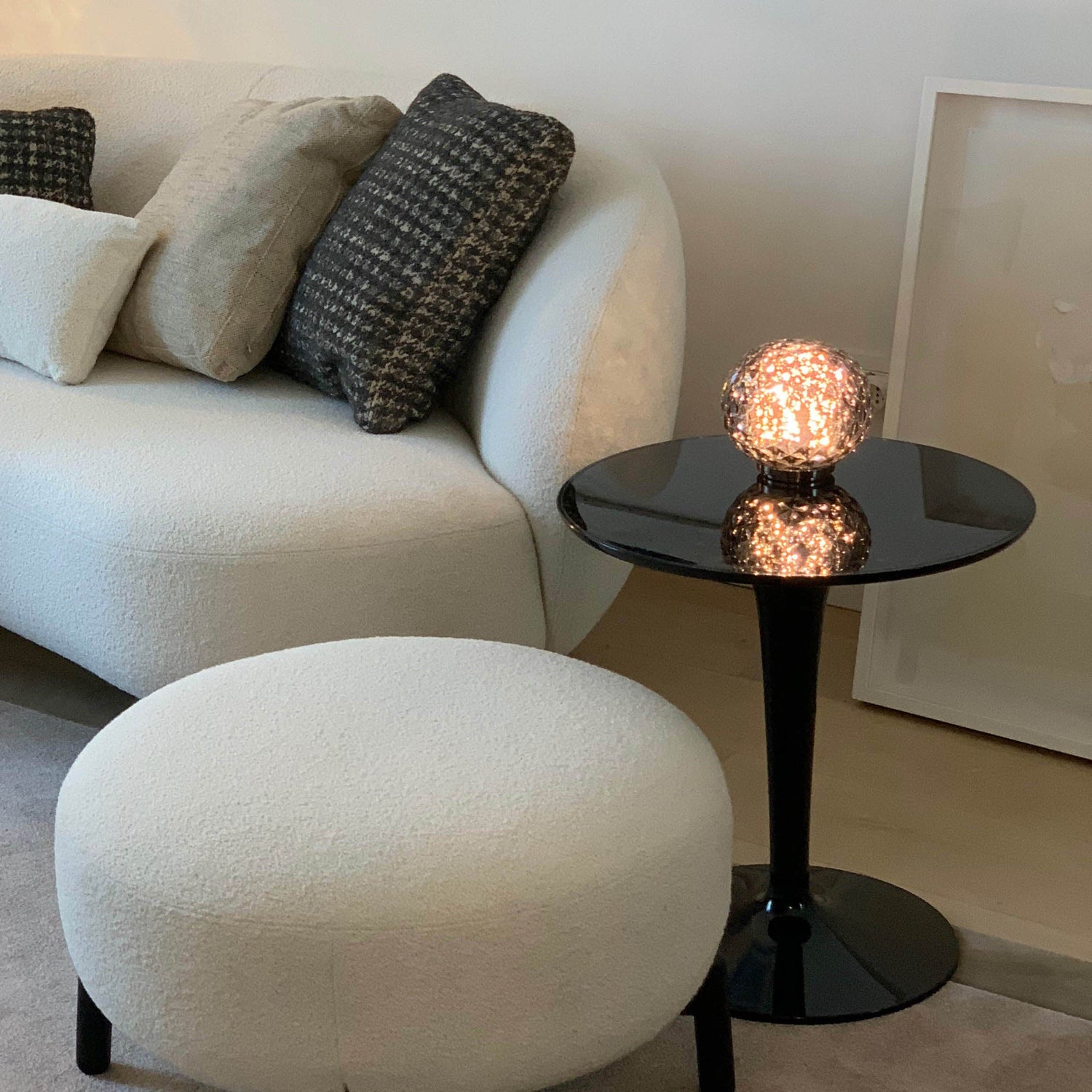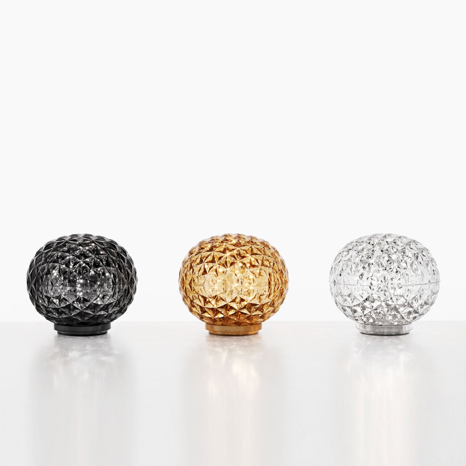 A miniature version of a Kartell classic, the Mini Planet Table Lamp is ready to bring unexpected, yet well-accented style to any room in your home. Crafted from thermoplastic and transparent or batch-dyed acrylic, this diminutive lamp brings high-quality design to your bedside table or desktop work surface. Available as a rechargeable design or plug-in version, this textured triumph can easily be moved about your space and utilized wherever necessary to bring a bright touch and classic appeal to your well-appointed home.
