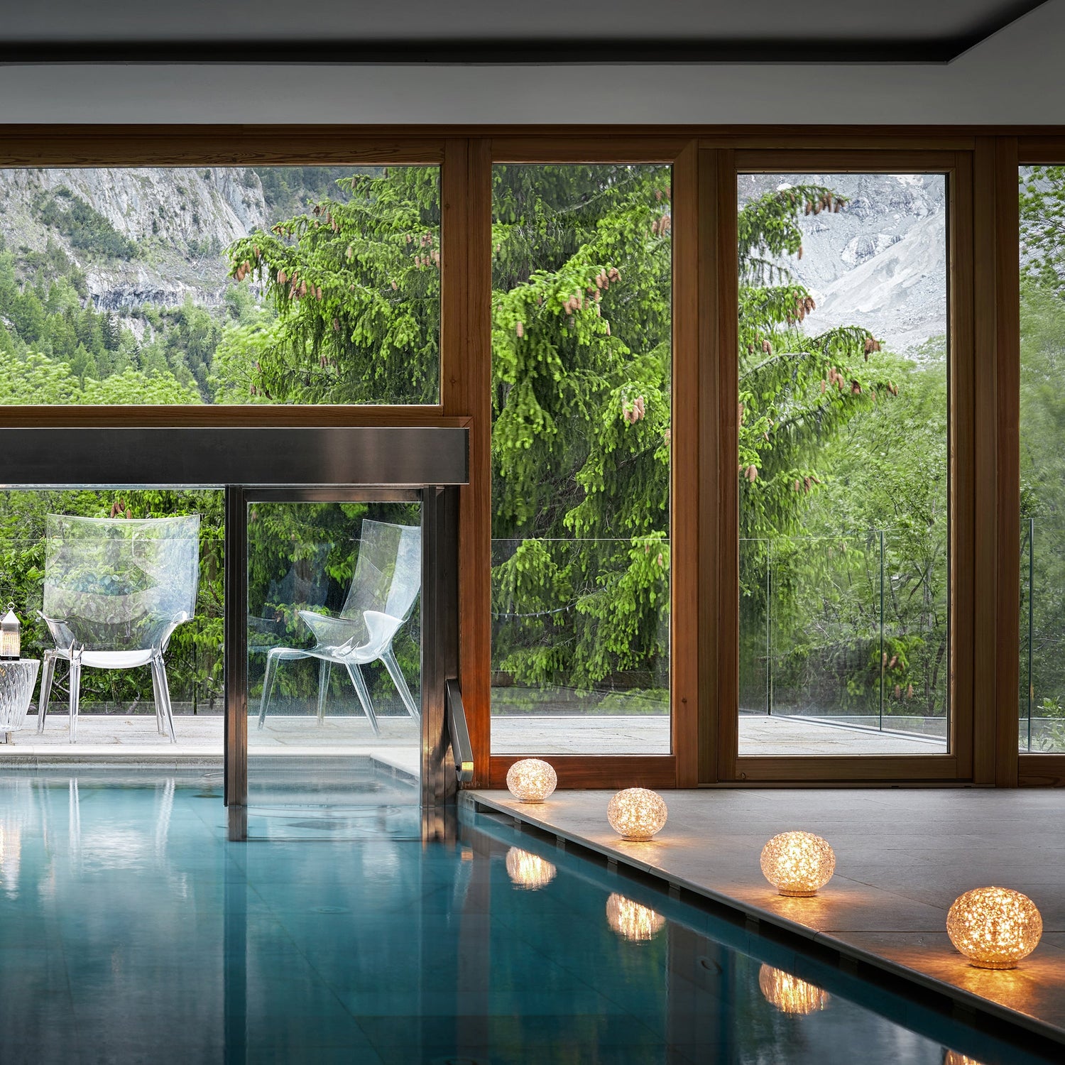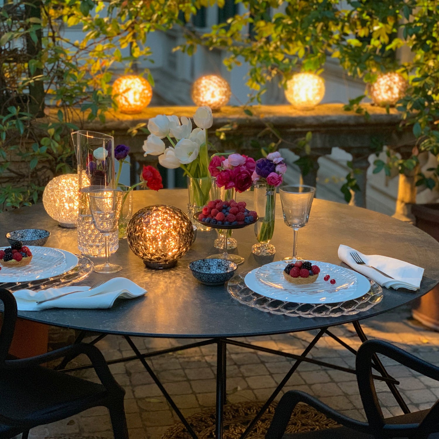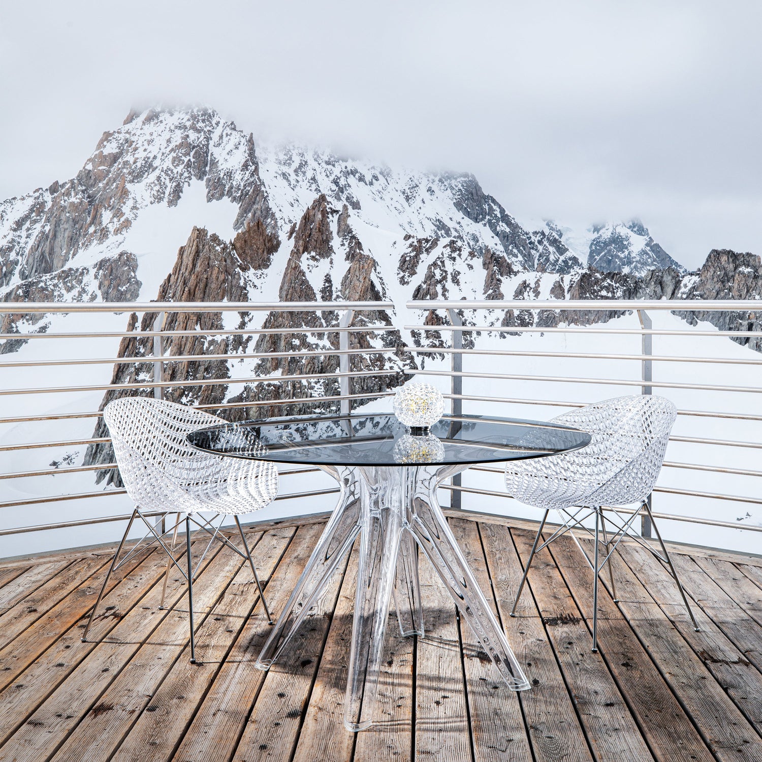 A miniature version of a Kartell classic, the Mini Planet Table Lamp is ready to bring unexpected, yet well-accented style to any room in your home. Crafted from thermoplastic and transparent or batch-dyed acrylic, this diminutive lamp brings high-quality design to your bedside table or desktop work surface. Available as a rechargeable design or plug-in version, this textured triumph can easily be moved about your space and utilized wherever necessary to bring a bright touch and classic appeal to your well-appointed home.