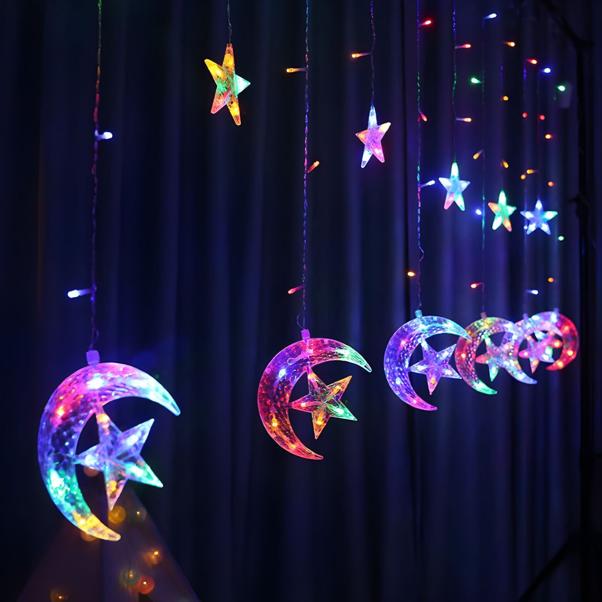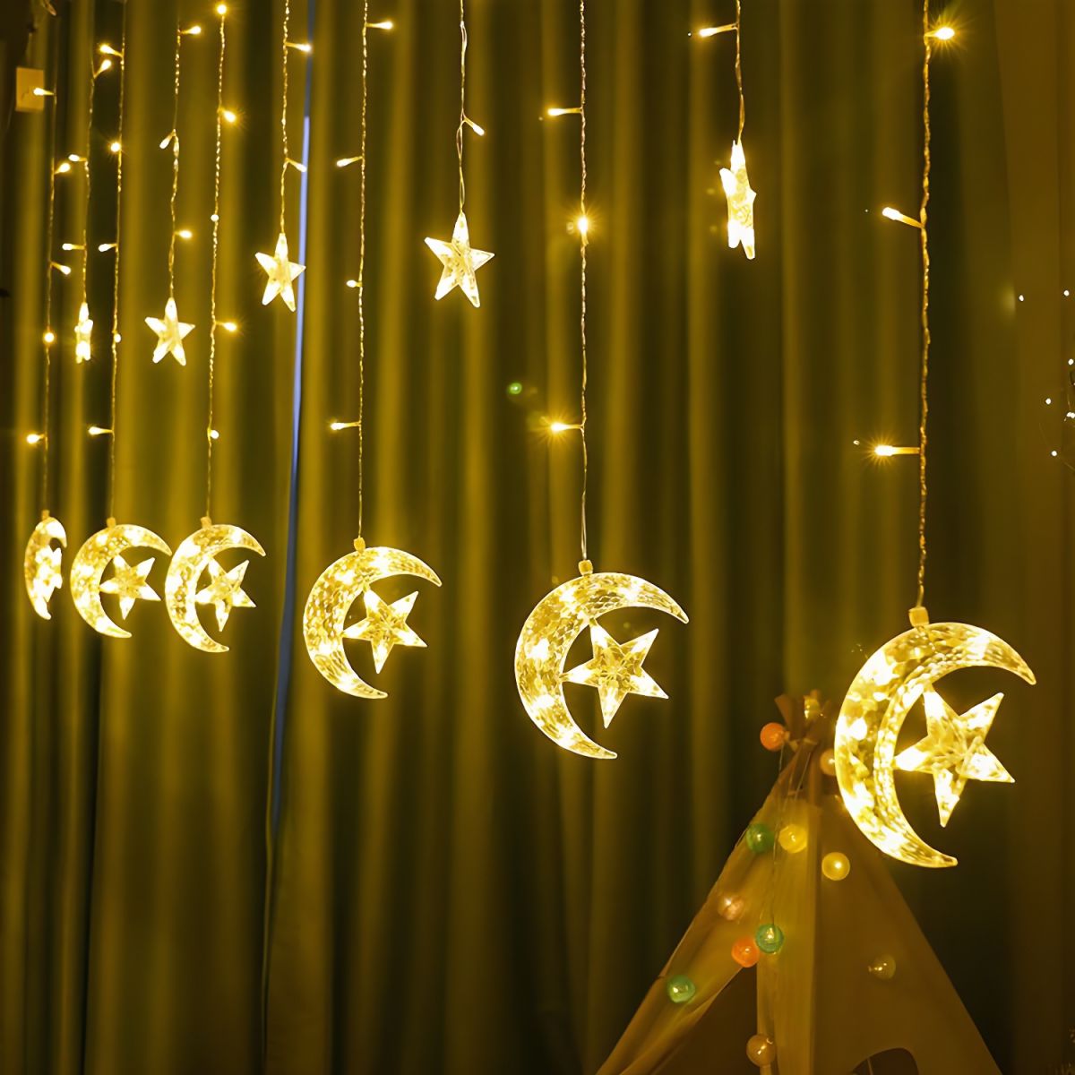 Moon and Star Curtain String Lamps Artistic Plastic 12-Head LED Festive Light
