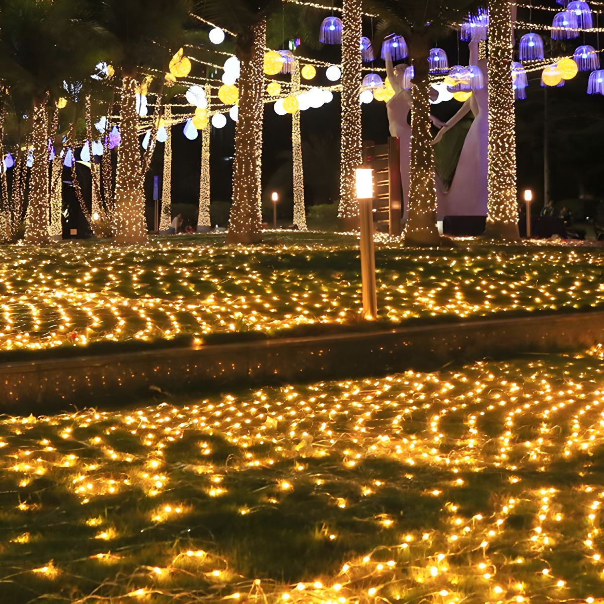 Net Shaped Solar Curtain String Light Set Nordic Plastic Outdoor LED Landscape Light