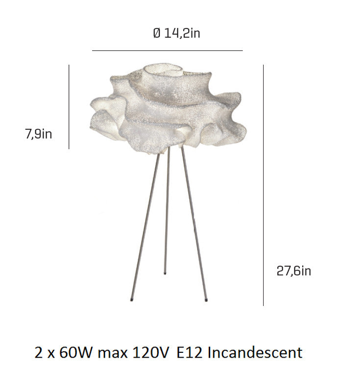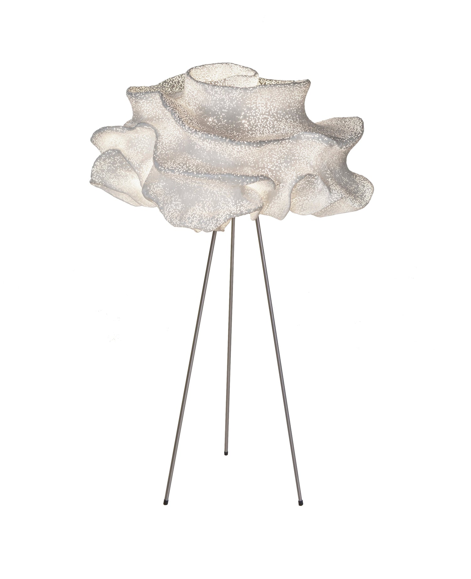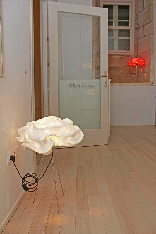 Painted stainless steel mesh and thread. Arturo Alvarez takes materials out of their usual context, exploring their possibilities up to the point of achieving surprising results. He begins with an apparently cold steel mesh or thread, that he folds, curves or embroils, forming organic elements. He transforms it with these crafting techniques in warm and pleasant forms... bringing it to life. A whole universe of designs develops from this way of working. They all radiate a subtle elegance and delicacy, full of movement, and shine an intense light through them. Painted stainless steel is a compact and resistant material, that won't wear out as time goes by.
