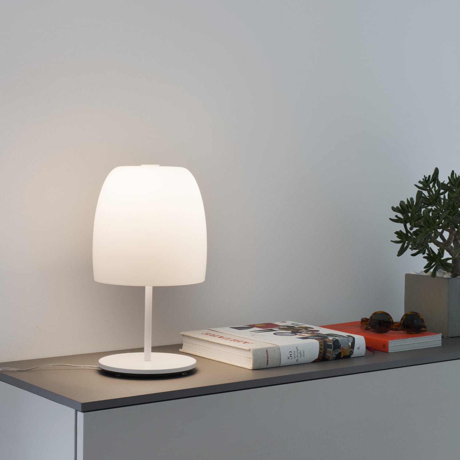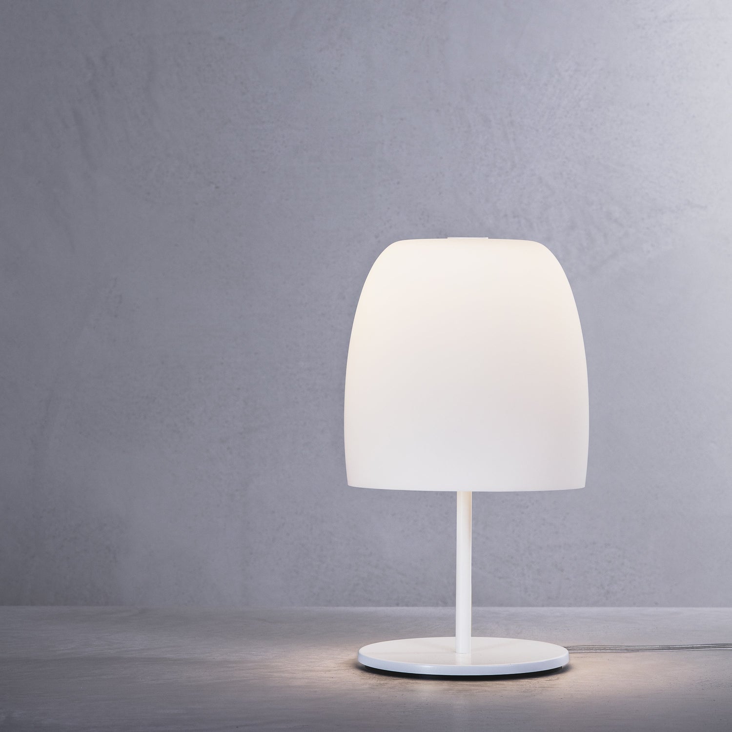With its metal base and blown glass diffuser, the Notte Table Lamp designed by Mengotti for Prandina is a simple solution to bring light to any space within your home. Perfect situated on an entryway console or brightening up an office workspace, this lamp's rounded shade and simple base offer a minimalist design that blends well with many different interior styles. Flank either side of a vanity for a well-light makeup space or place on a side table to read your favorite novel in a warming glow.