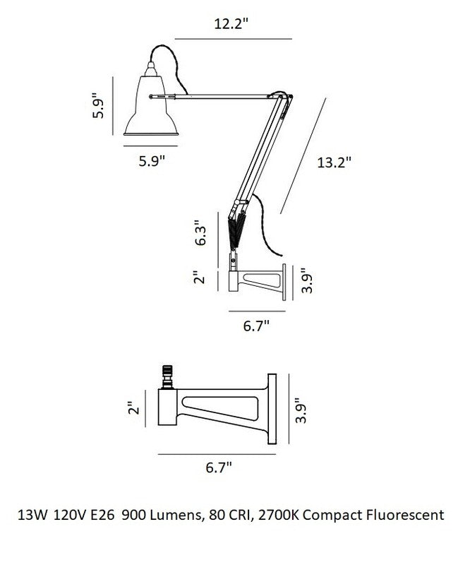 Heritage inspired colors and authentic brass details create a new aesthetic for this iconic Anglepoise design, whilst desk, wall and Pendant options introduce greater versatility. This wall lamp comes with an easy to install heavy cast iron wall bracket.
