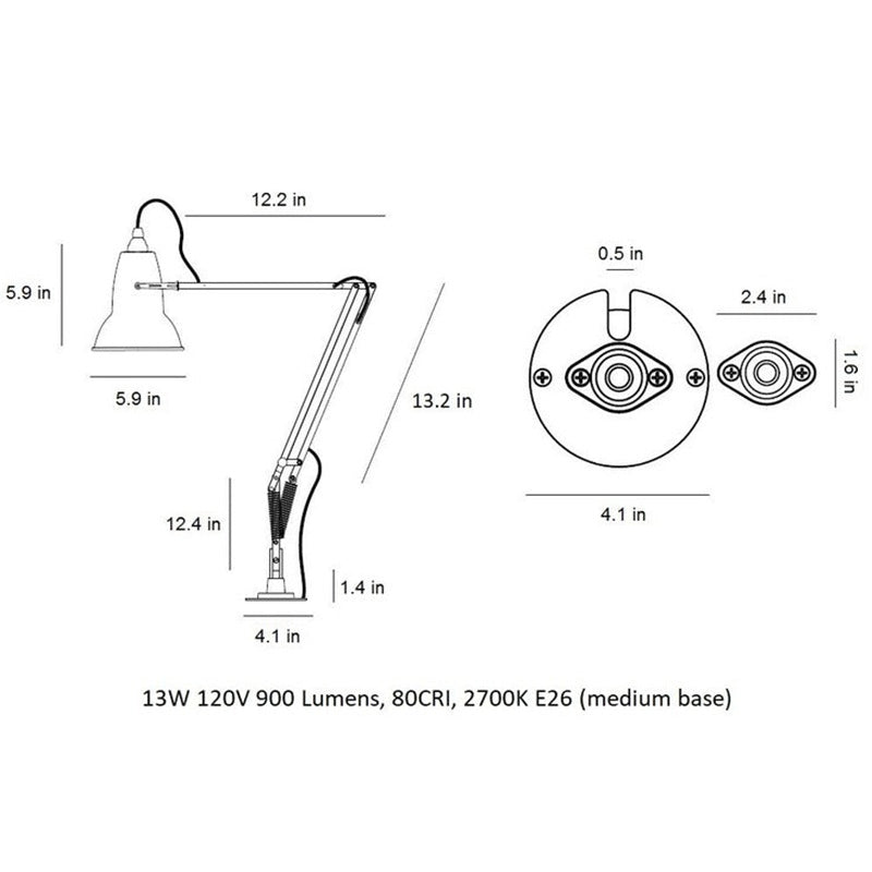 Inspired by original designs from the Anglepoise archive, the space saving Original Desk Insert has a cast iron body and plated steel fittings so that it can be securely hard-mounted to a desk Refinements such as a cable management option and finishes that have been color-matched to the compatible 1227 and 1227 Mini collections make this a chic and functional accessory.