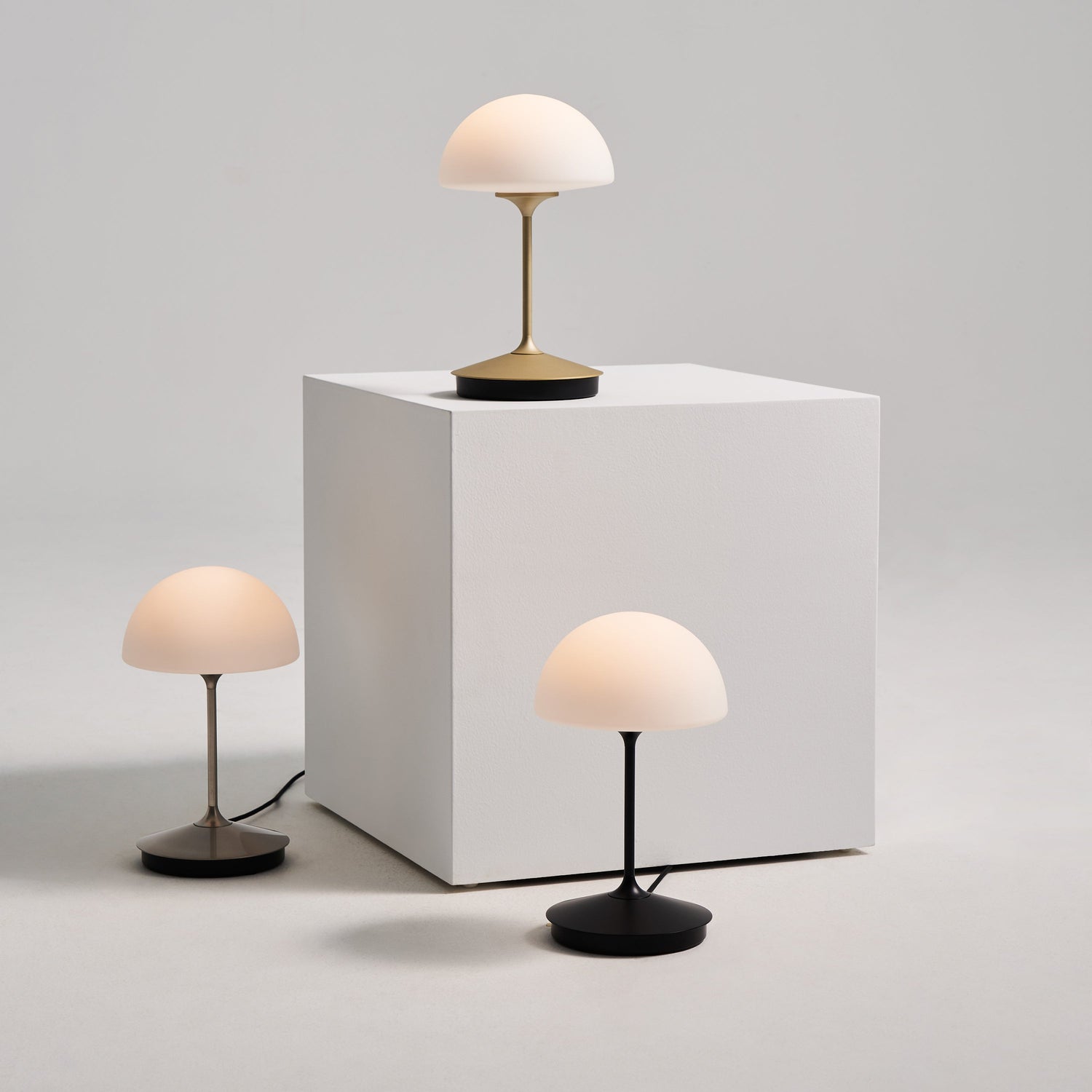 - Available in Matt Black or Champagne Gold finish with Matt Opal glass