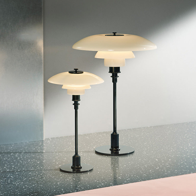 The fixture provides soft lighting. PH 2/1 is designed on the principle of a reflecting multi-shade system, creating harmonious and glare-free lighting. The shade design is based on a logarithmic spiral, with the center of the light source placed in the spiral's focal point.
