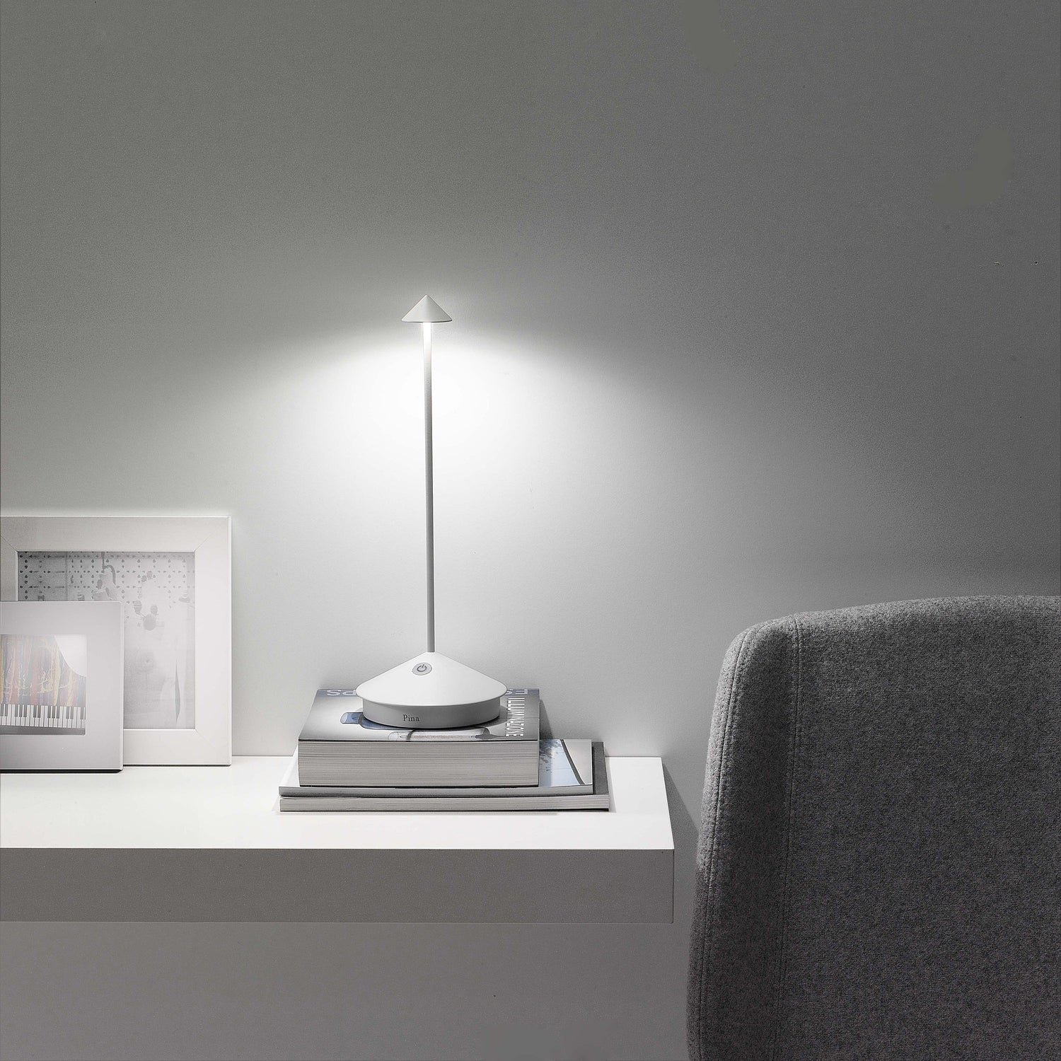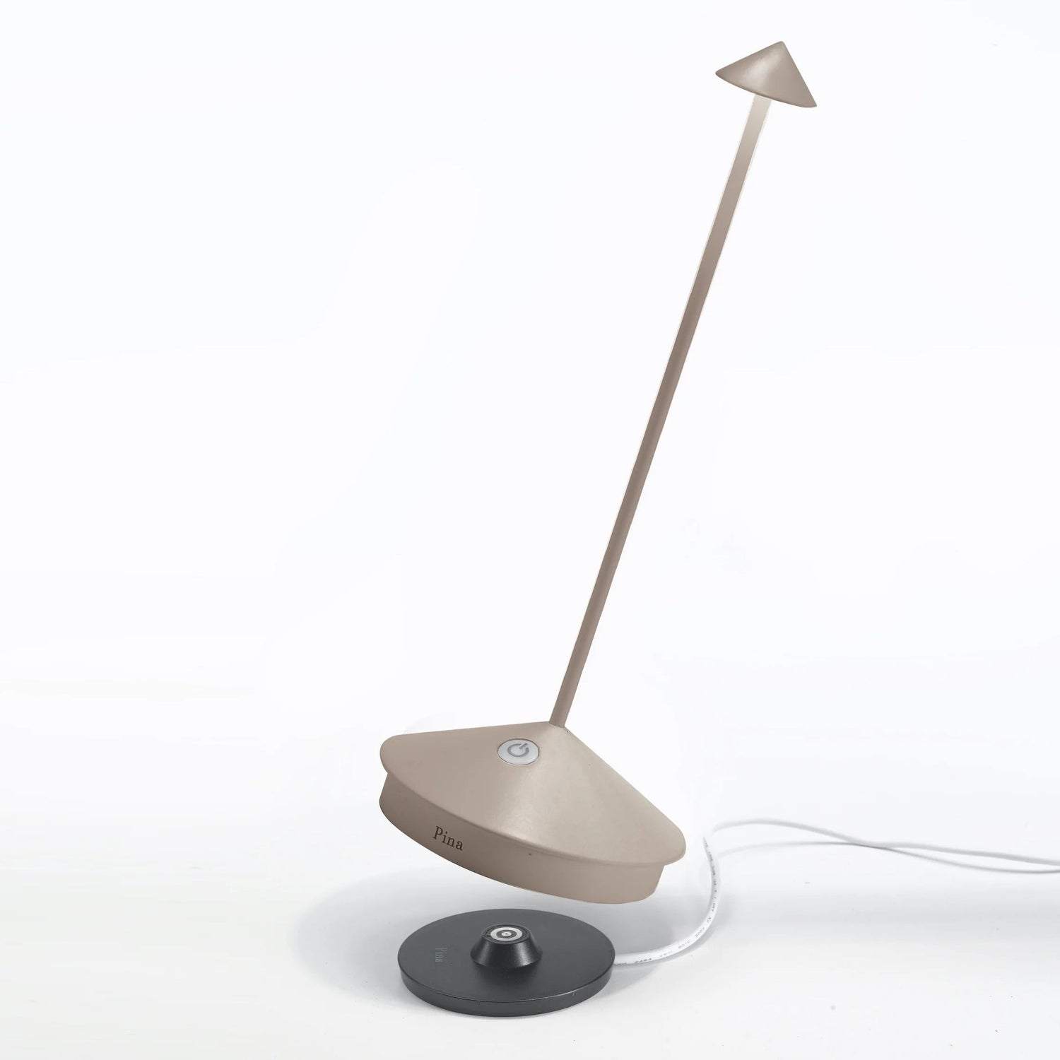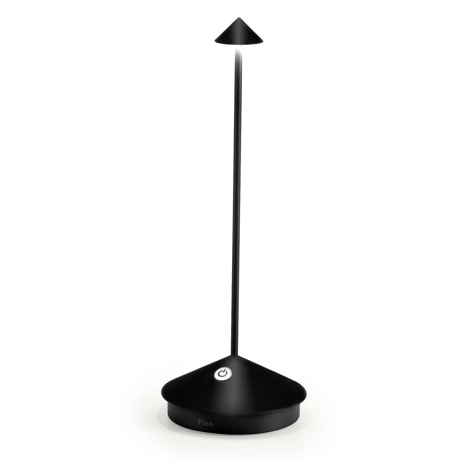 The Pina Pro Lamp from Zafferano is the perfect portable lamp to elevate your space with clean, modern style. It's a super cute, cordless lamp that's rechargeable with energy-efficient LED technology providing up to 13 hours of lasting illumination from a single charge. Pina is a triple threat: stylishly crafted from matte painted aluminum in designer colors, versatile functionality for indoor & outdoor application (damp rated for covered spaces outdoors), and highly innovative with dimmable-touch technology.