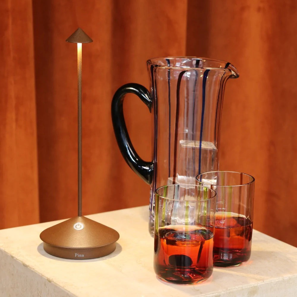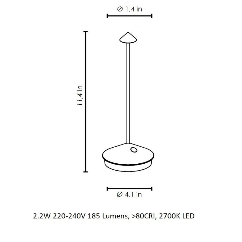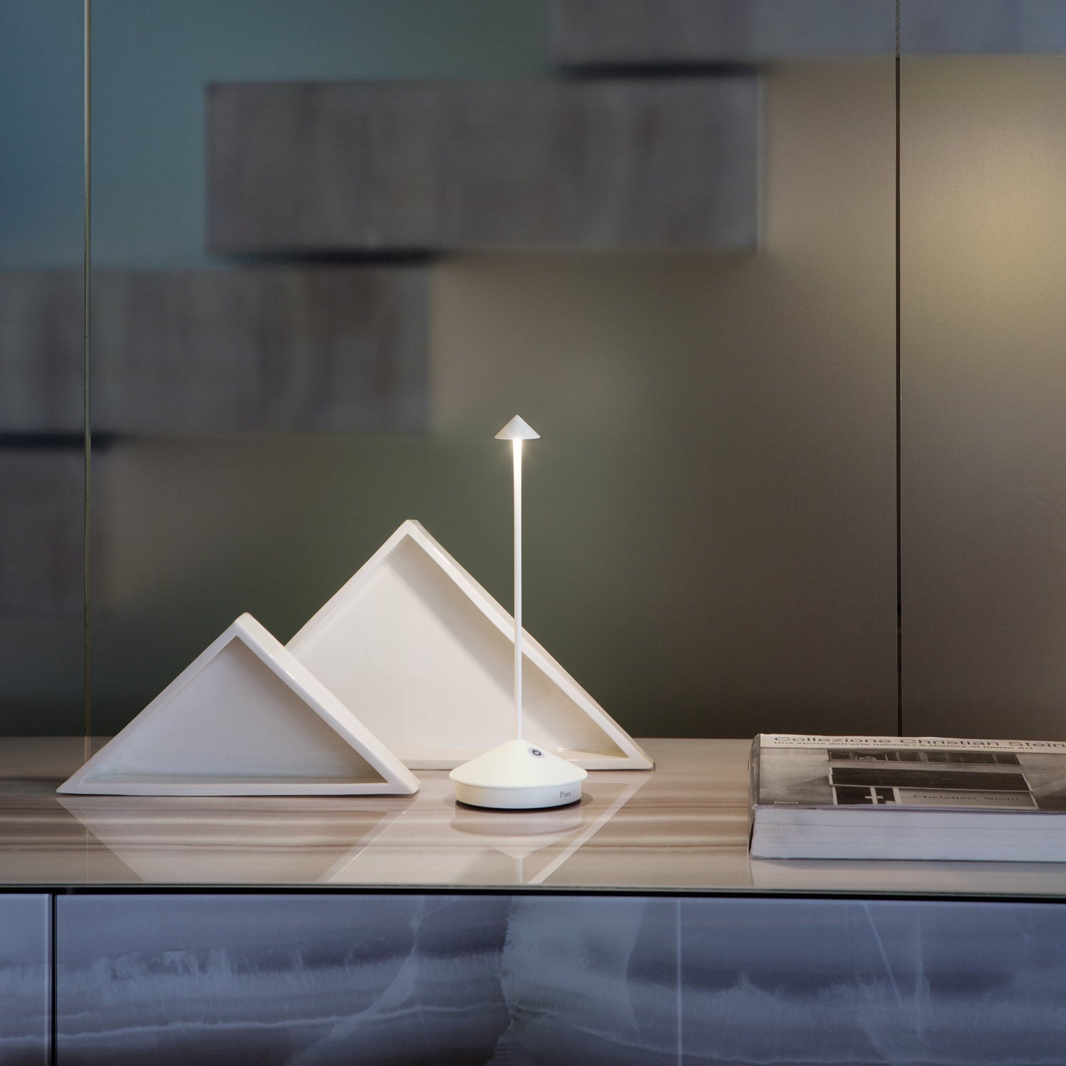 The Pina Pro Lamp from Zafferano is the perfect portable lamp to elevate your space with clean, modern style. It's a super cute, cordless lamp that's rechargeable with energy-efficient LED technology providing up to 13 hours of lasting illumination from a single charge. Pina is a triple threat: stylishly crafted from matte painted aluminum in designer colors, versatile functionality for indoor & outdoor application (damp rated for covered spaces outdoors), and highly innovative with dimmable-touch technology.