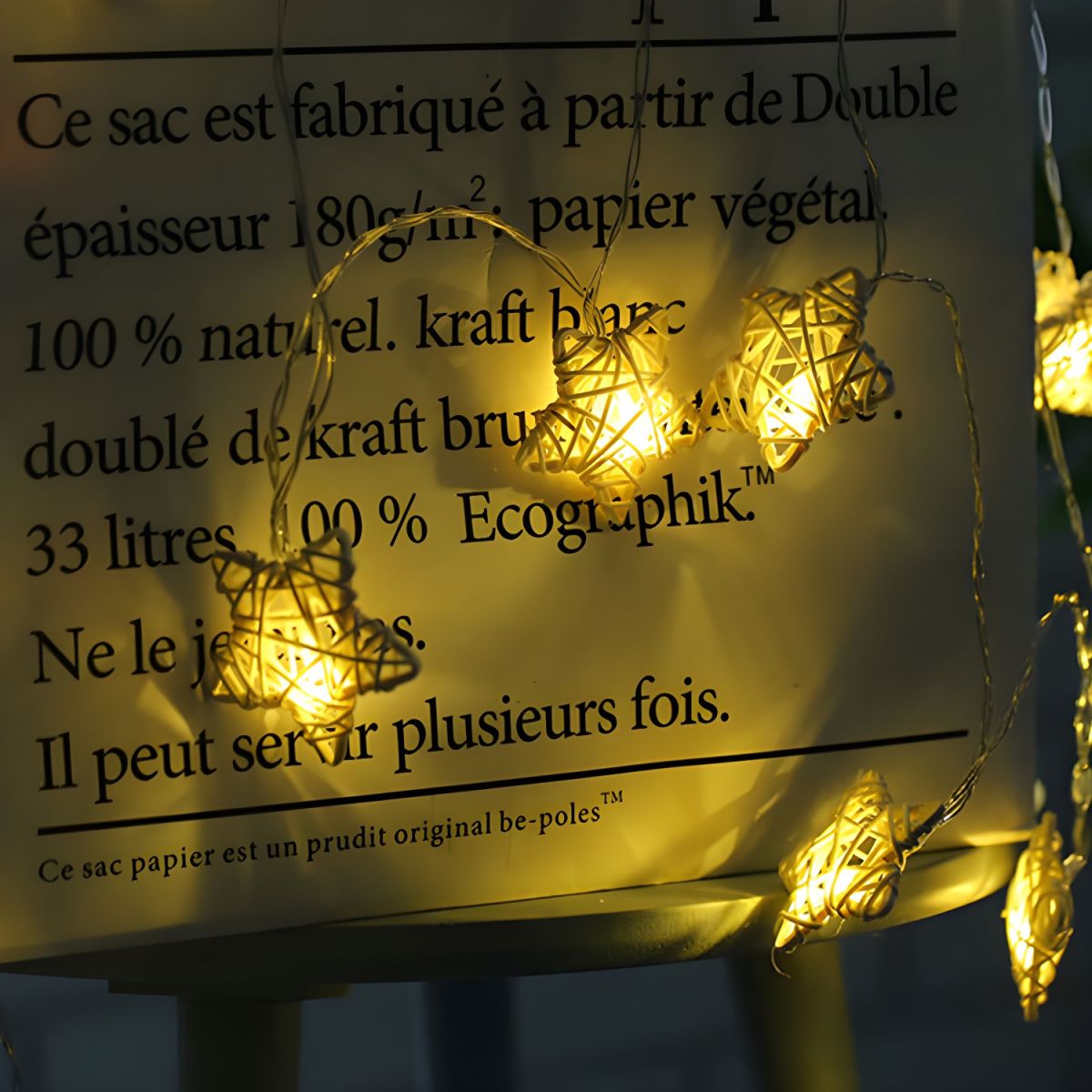 Plastic Woven Star String Lamp Modern 20/40 Heads Beige LED Party Light with USB Charging Cord. 13.1/19.6 Ft