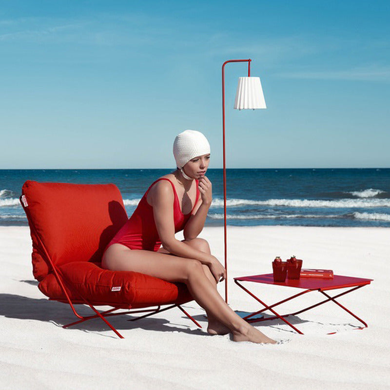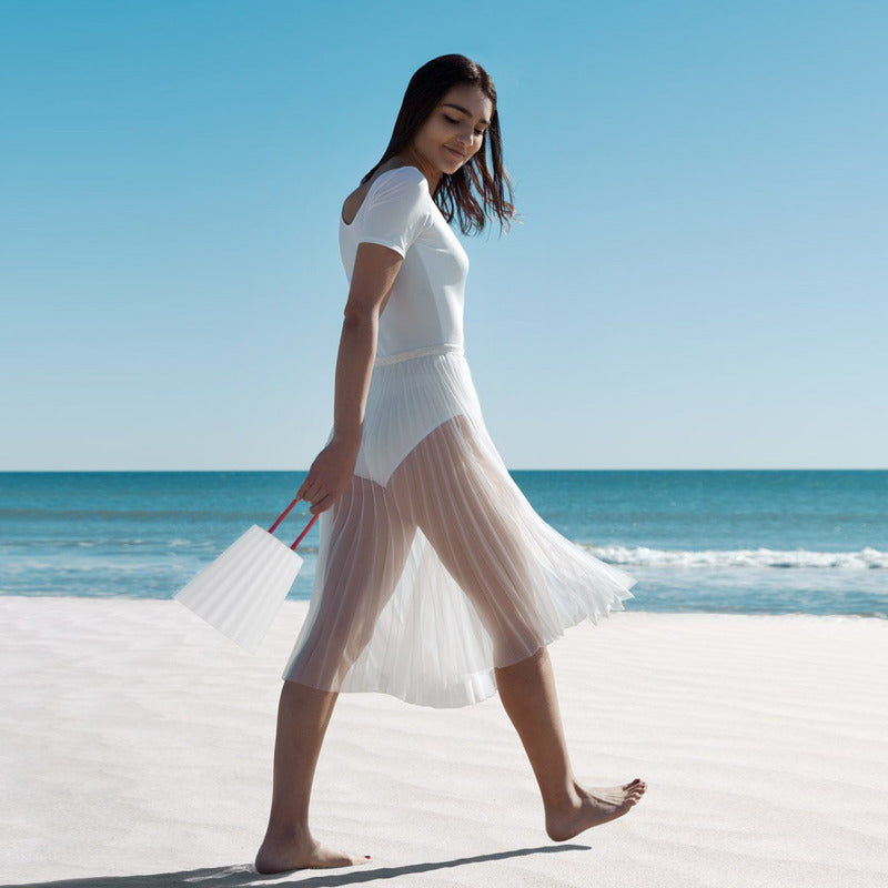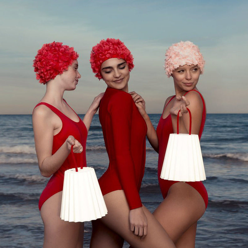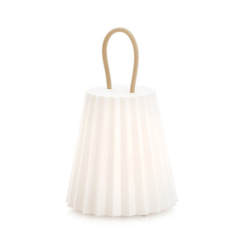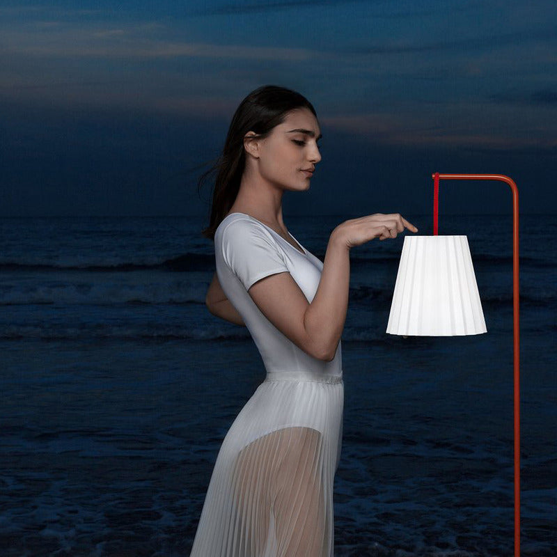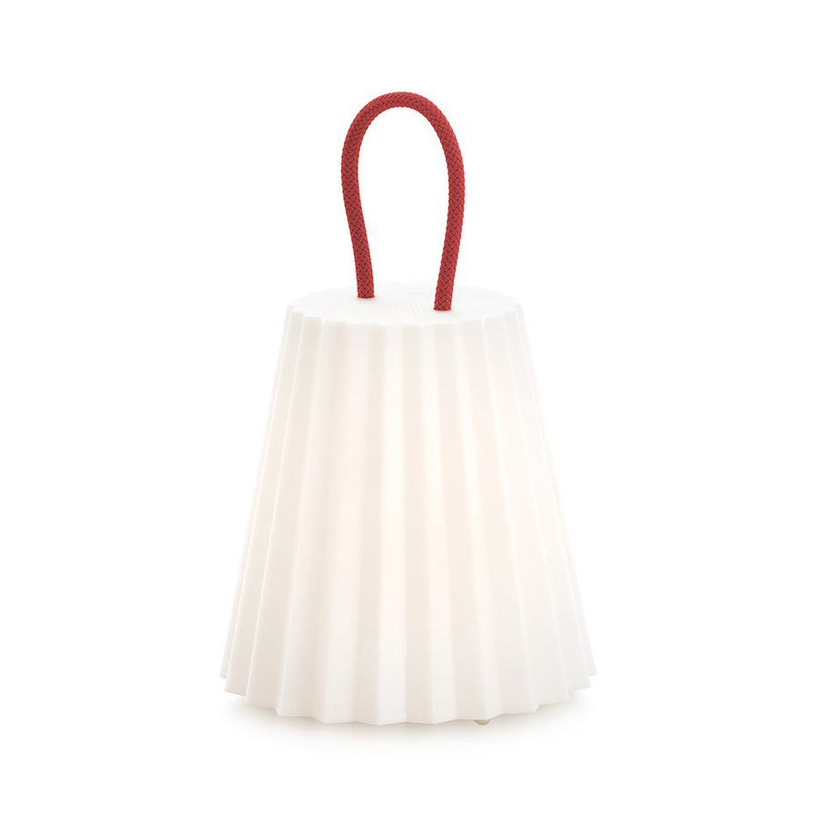 Thanks to its folds made with an unexpected material, polyethylene, and wrist bag-style cord, Plisy is the perfect lighting complement to give a chic and fun touch to an outdoor evening. A portable lamp that translates the aesthetics of elegantly pleated indoor lamp screens into a piece specially designed for outdoor use. Plisy is a stylish and technological reinvention of the garden lantern, which incorporates LED light and is charged by USB.