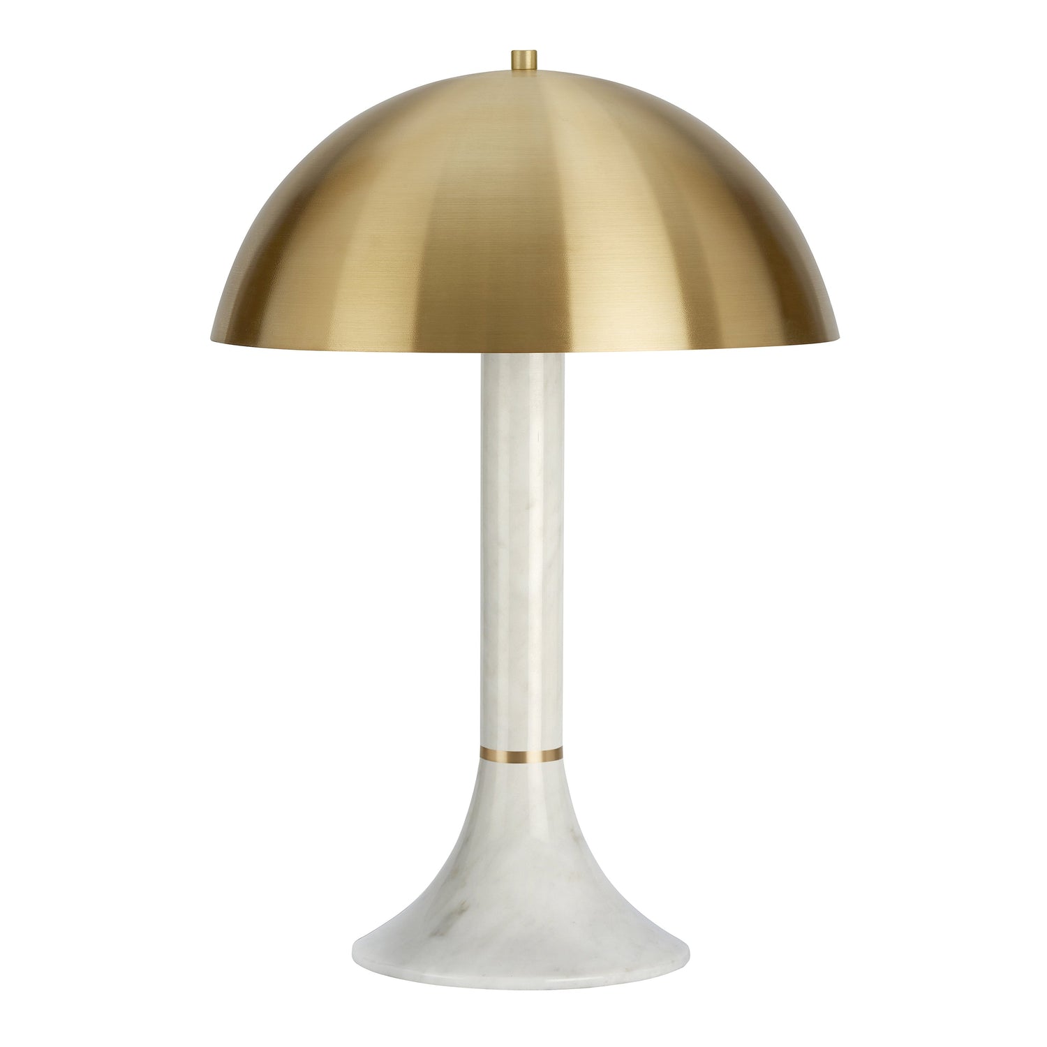 Influenced by the curves and color combinations of the 70's resulting in a confident statement light. The distinct satin brass dome references the fun and 'pop' side of the 70's and the gold brass ring placed at the neck of the column crowns the piece with the CTO Lighting.
