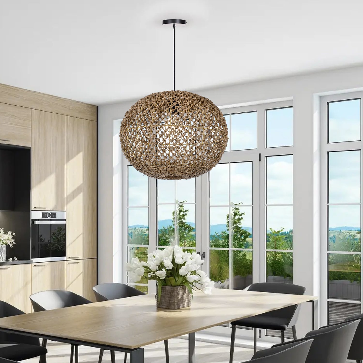 Elevate your space with our exquisitely crafted lamp shade, featuring a round, hollow design intricately woven with hemp rope. This unique and timeless piece effortlessly combines natural elements with contemporary style. Illuminate any room with a warm and ambient glow, while adding a touch of rustic elegance and sophistication.