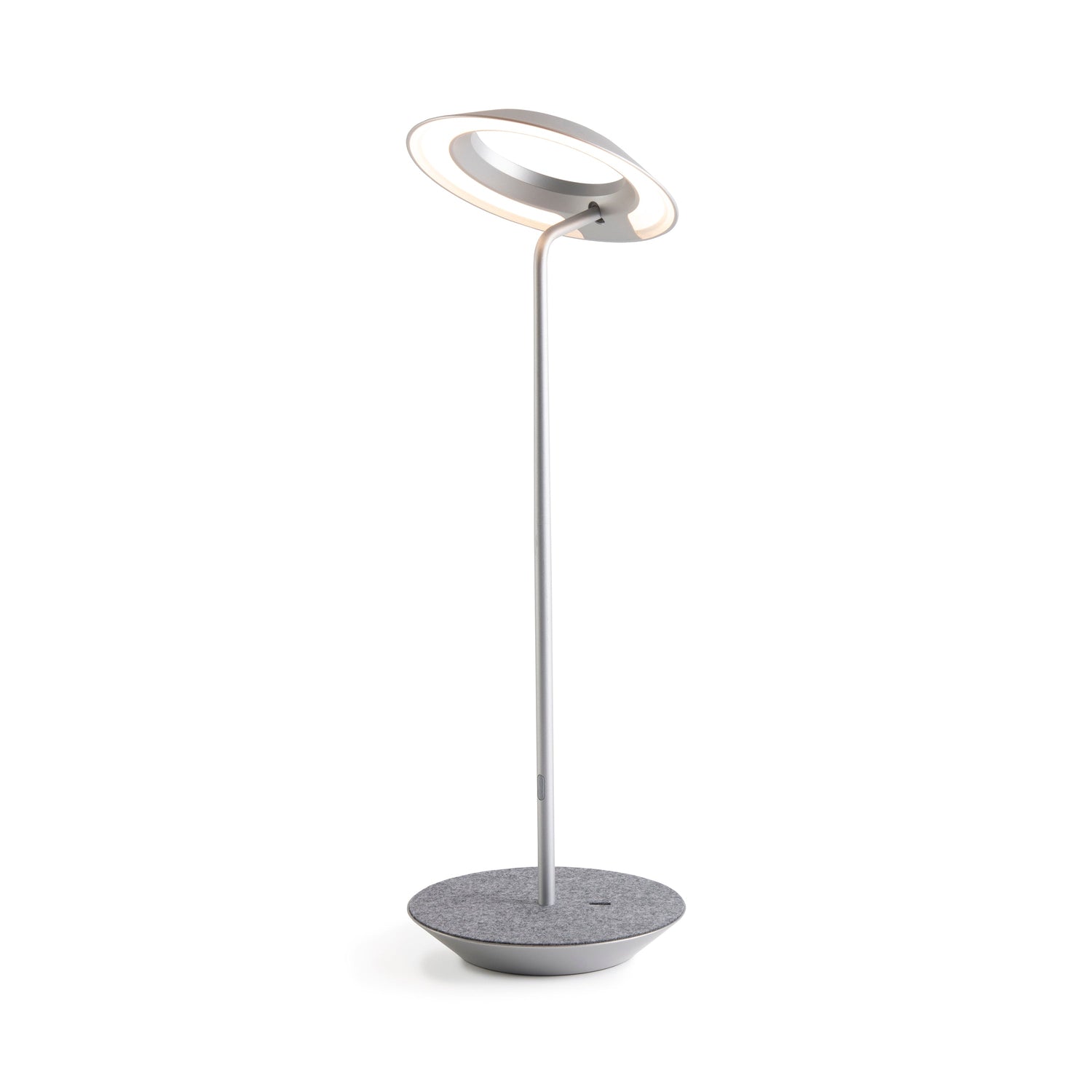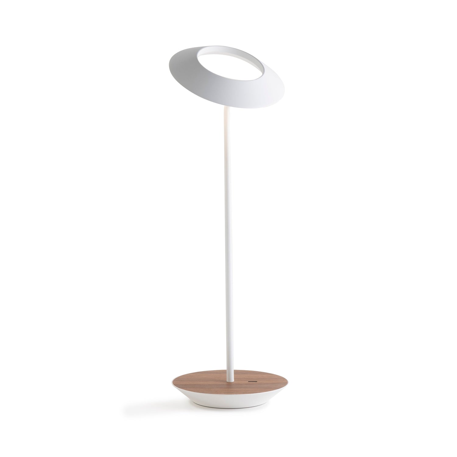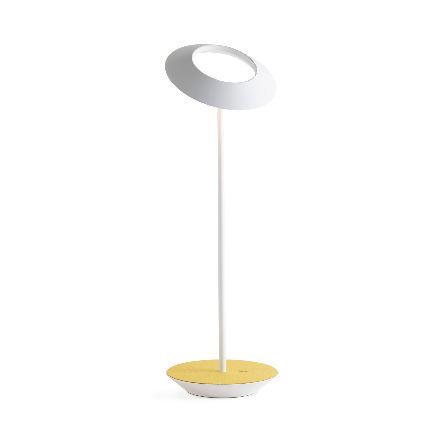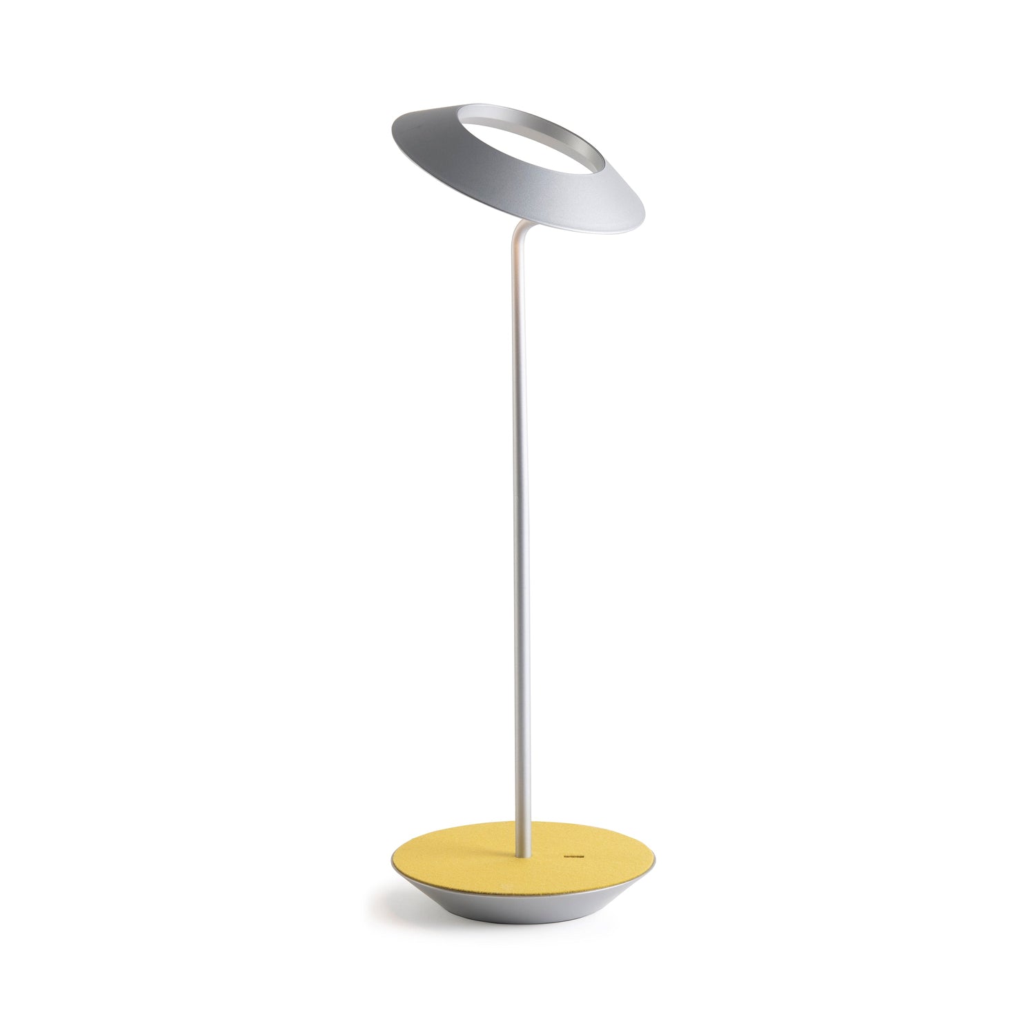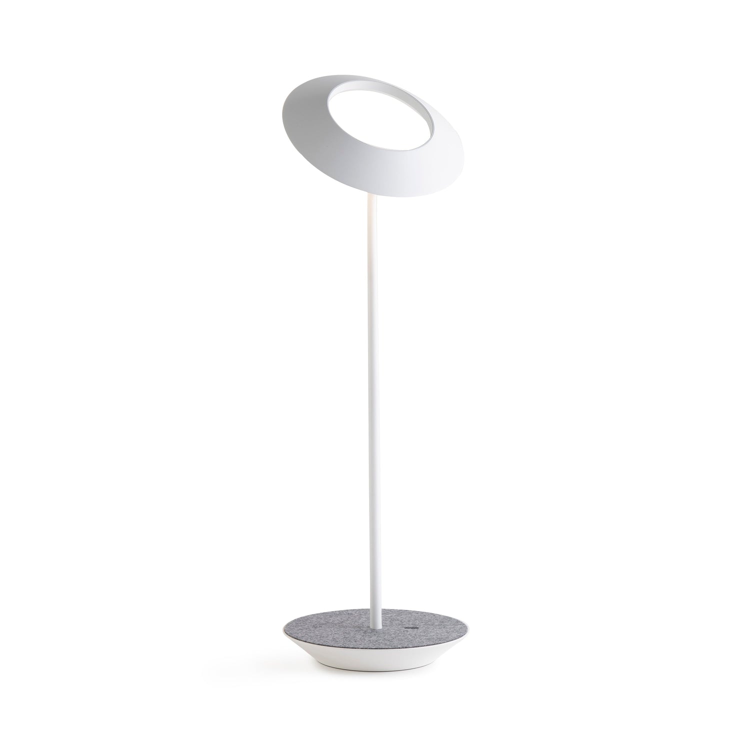 The Royyo Desk lamp adds an elegant flair to any space with its minimal wiring and pleasing circular design. Its minimal silhouette houses complex inner technology for a marriage of form and functionality. Royyo's embedded USB port allows users to charge any USB - compatible device. Interchangeable base plate options allow users to customize at ease. Achieve unity in design by inviting the Royyo Floor Lamp, Royyo Pendant and Royyo Desk Lamp into your home.