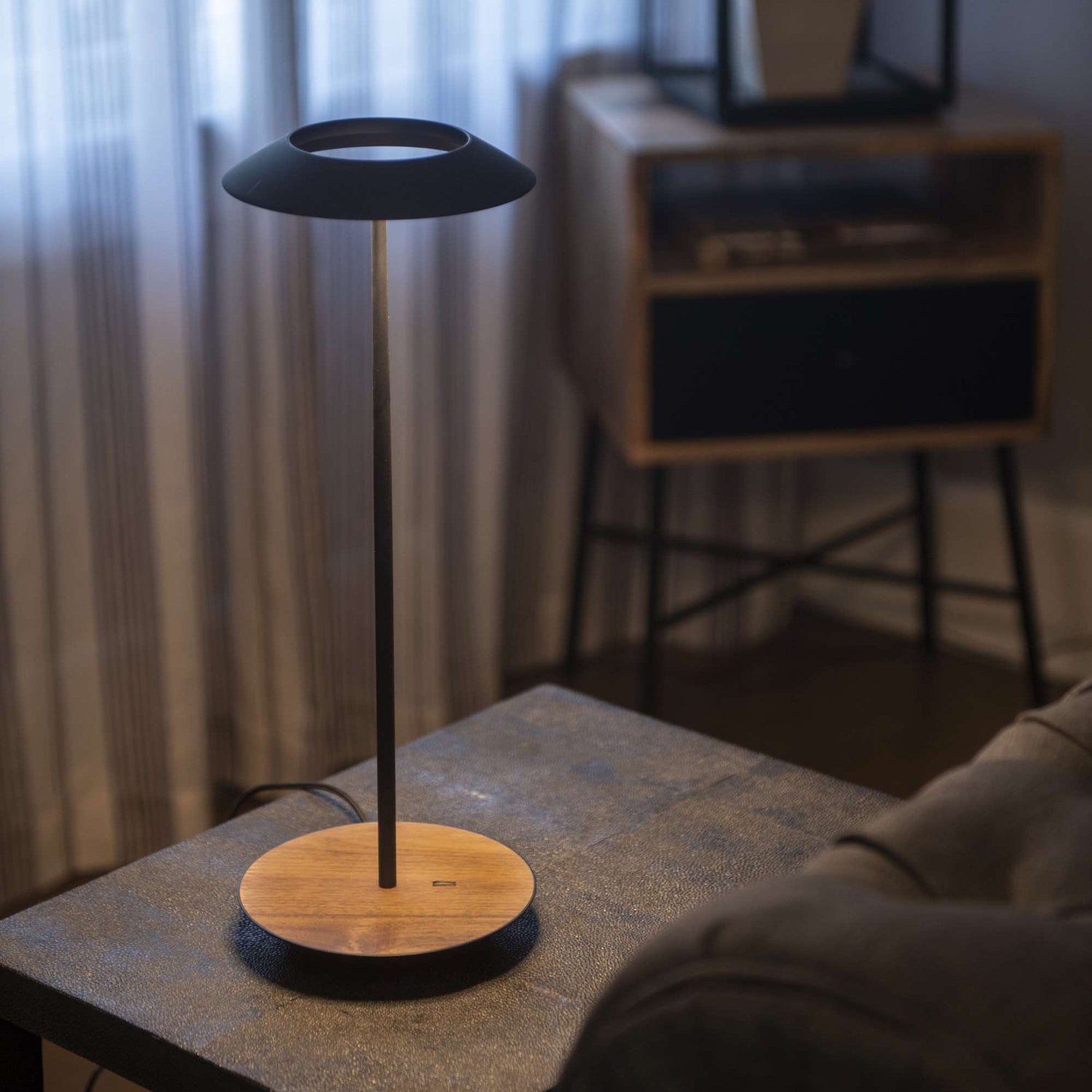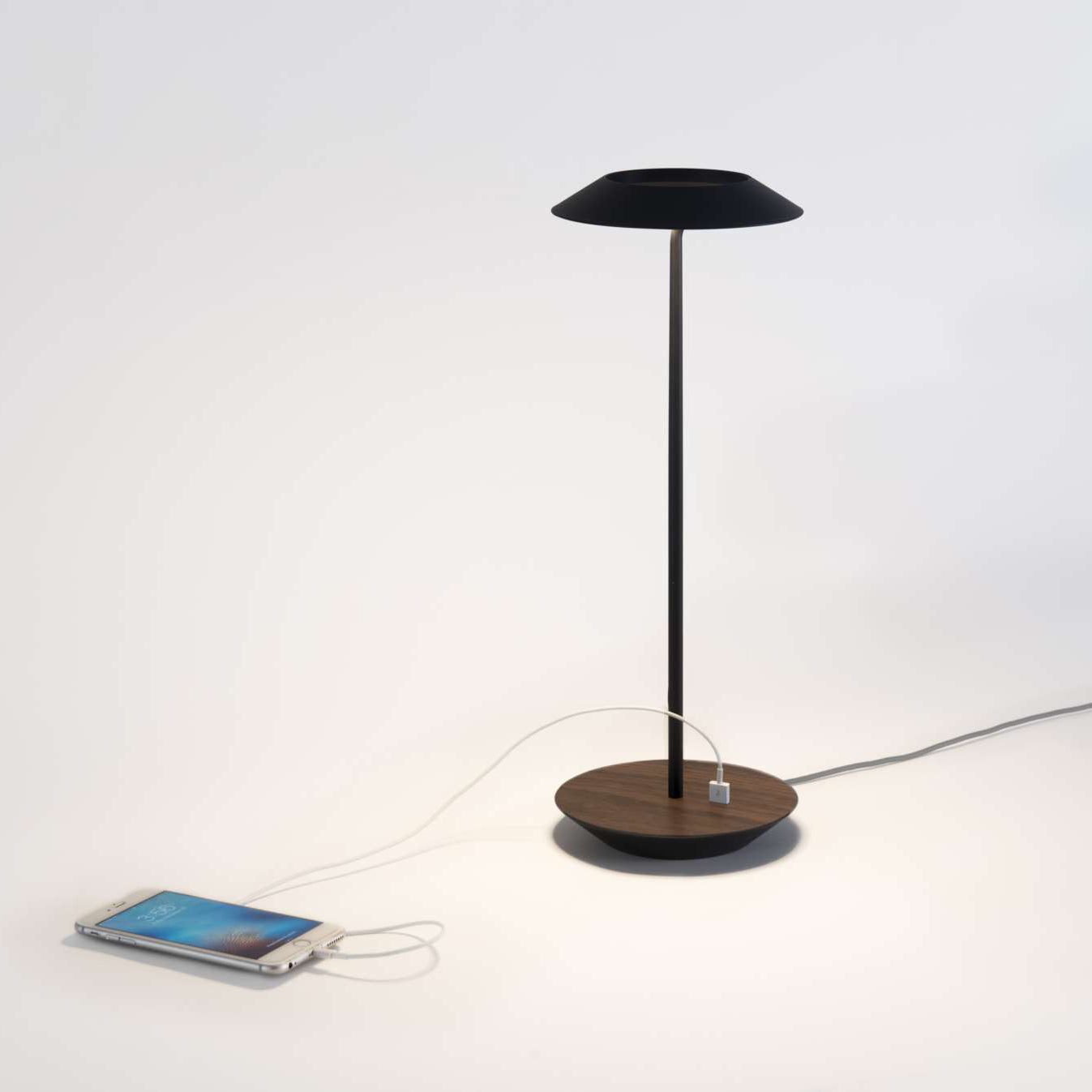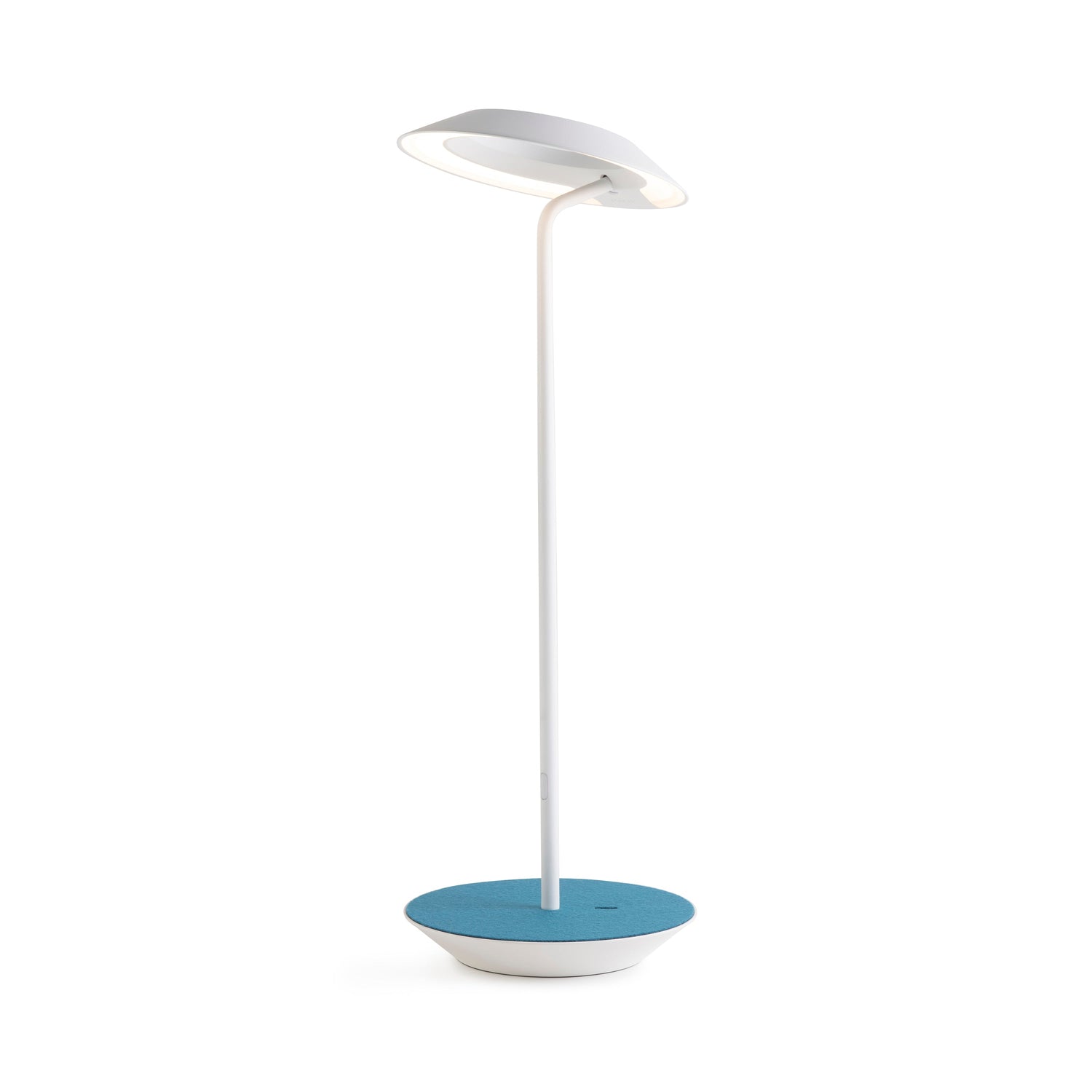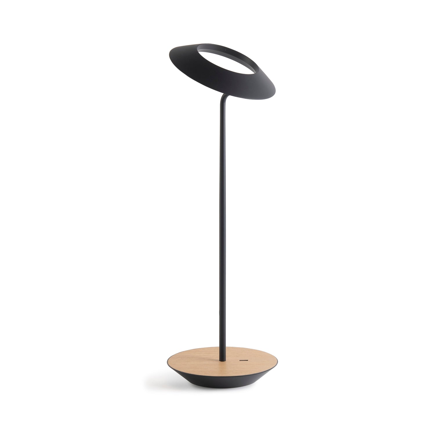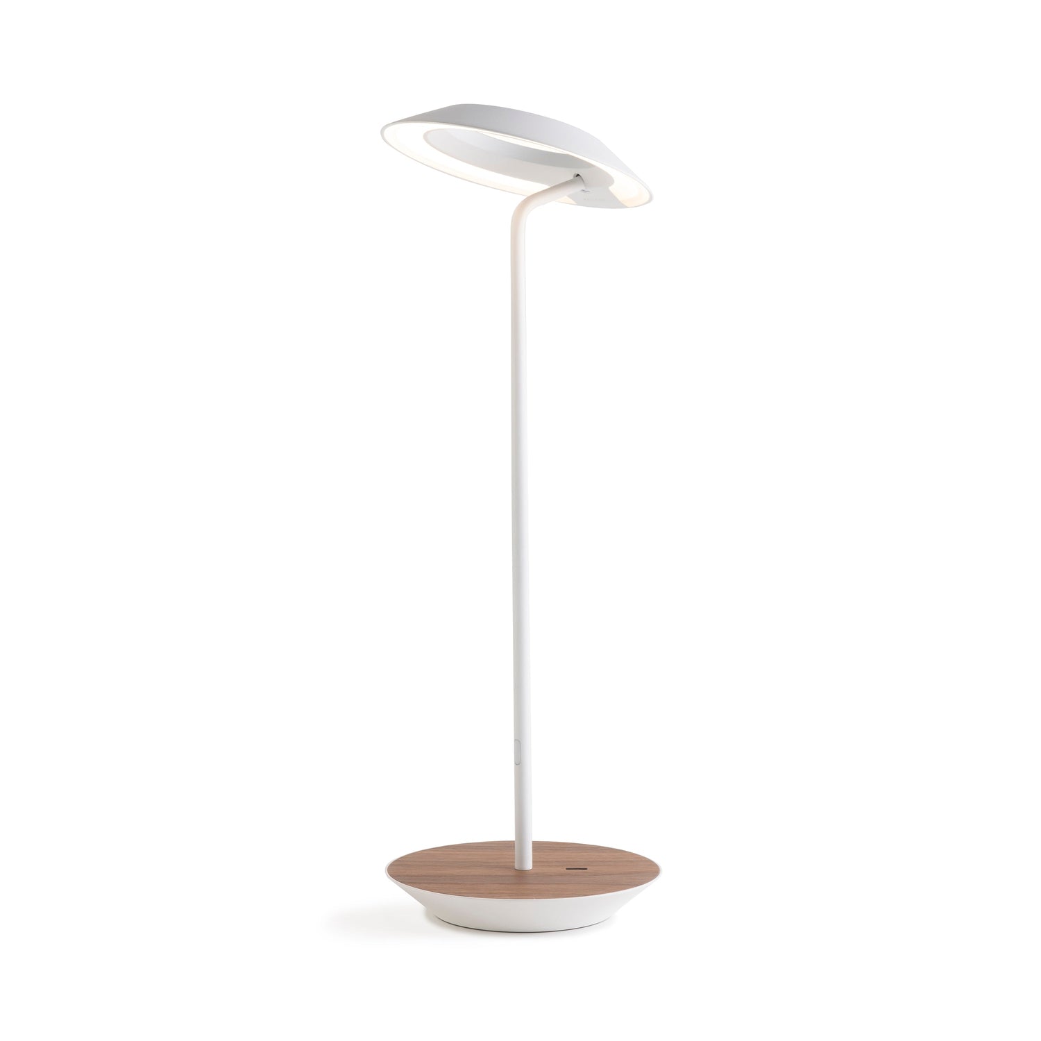 The Royyo Desk lamp adds an elegant flair to any space with its minimal wiring and pleasing circular design. Its minimal silhouette houses complex inner technology for a marriage of form and functionality. Royyo's embedded USB port allows users to charge any USB - compatible device. Interchangeable base plate options allow users to customize at ease. Achieve unity in design by inviting the Royyo Floor Lamp, Royyo Pendant and Royyo Desk Lamp into your home.