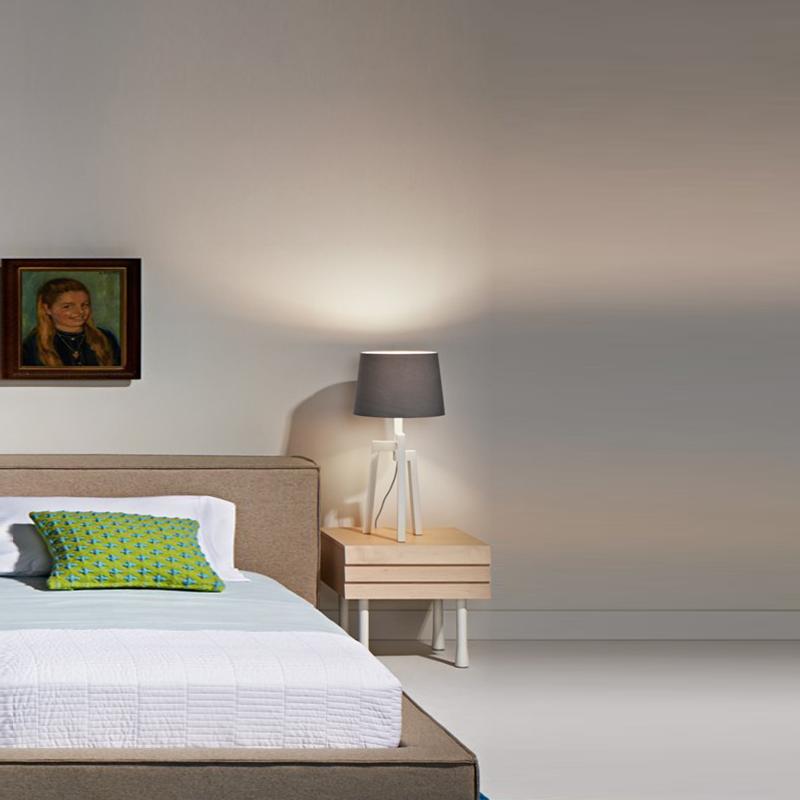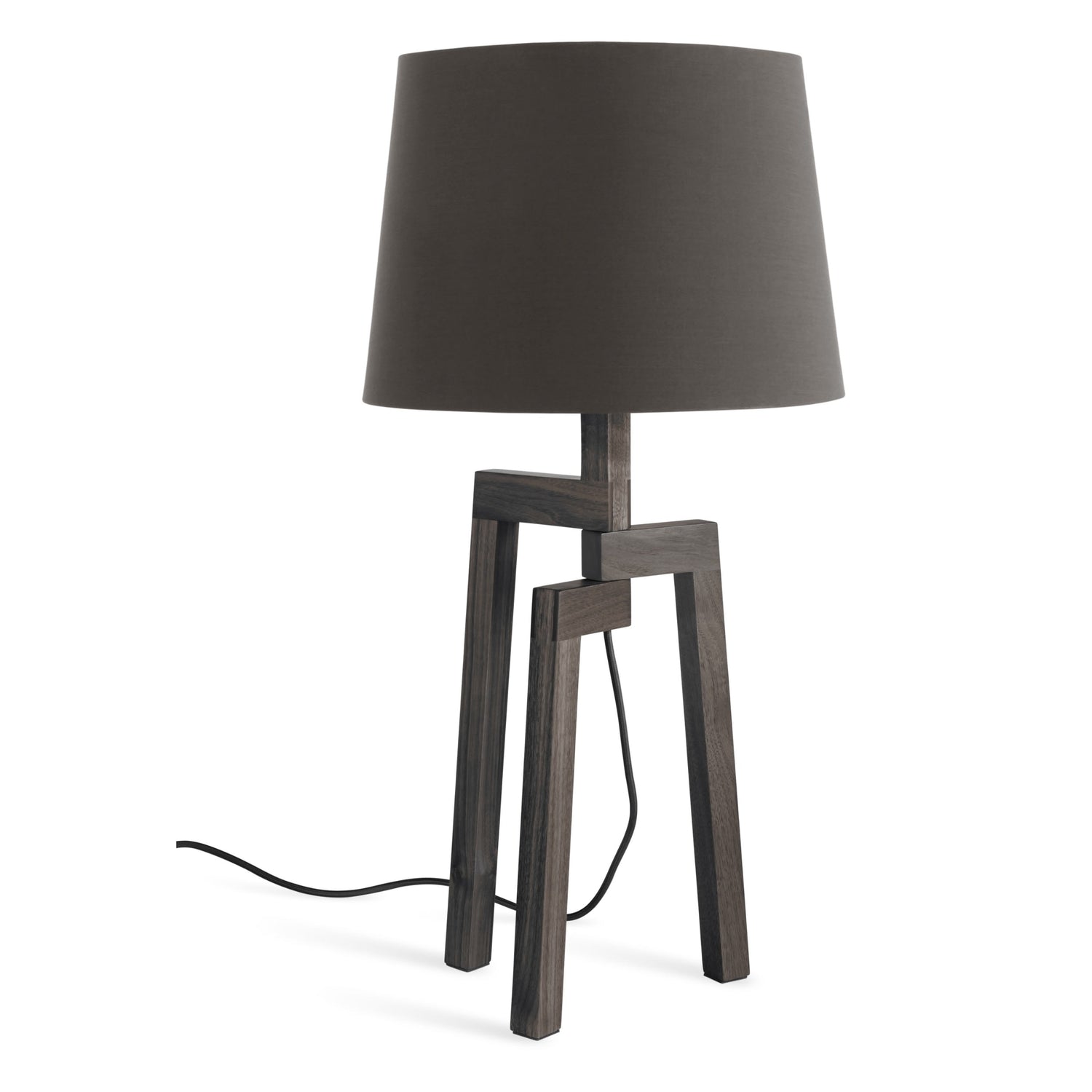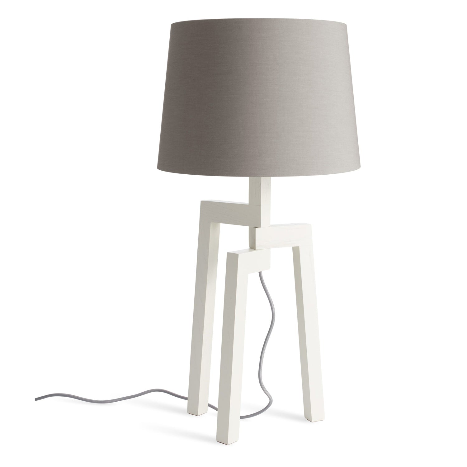 Traditional woodworking joinery takes on a different light when slender legs pirouette open to form one well-poised base. A crisp linen shade and cloth-covered cord complete the trifecta of goodness. Available in two sizes (floor and table), depending on how much leg you want to show.
