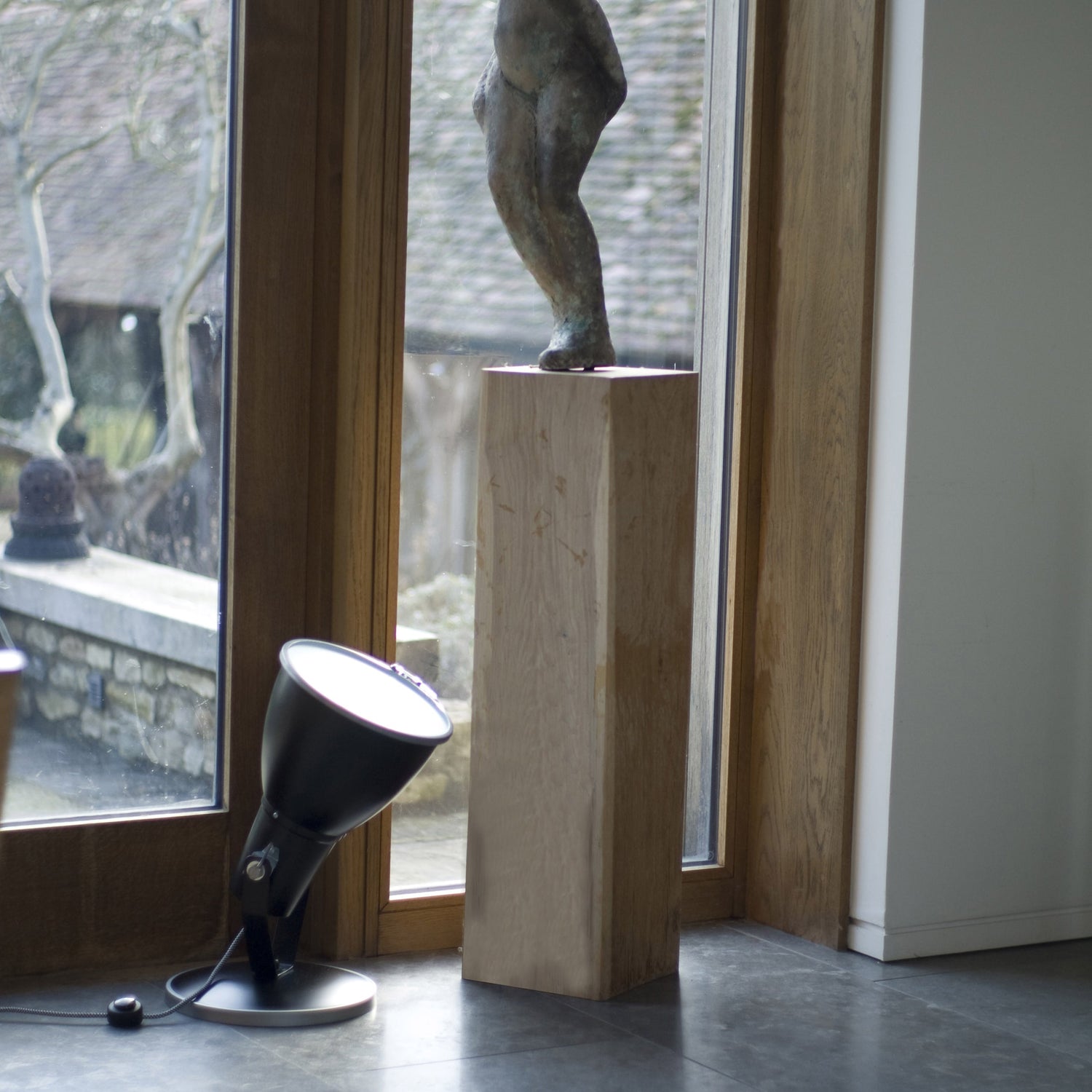 Inspired by the searchlight on the back of a toy lorry, the Stirrup collection is the ultimate in industrial chic. The freestanding floor light and uplighter with positionable shades has a frosted glass visor to prevent glare and provide a softer, more diffused light.