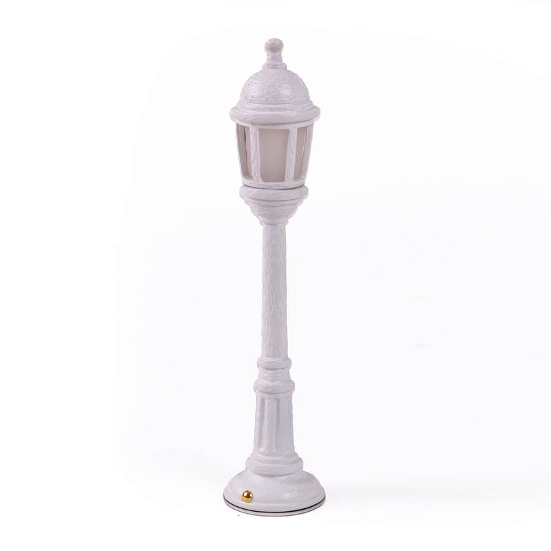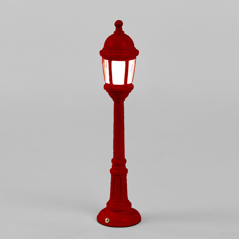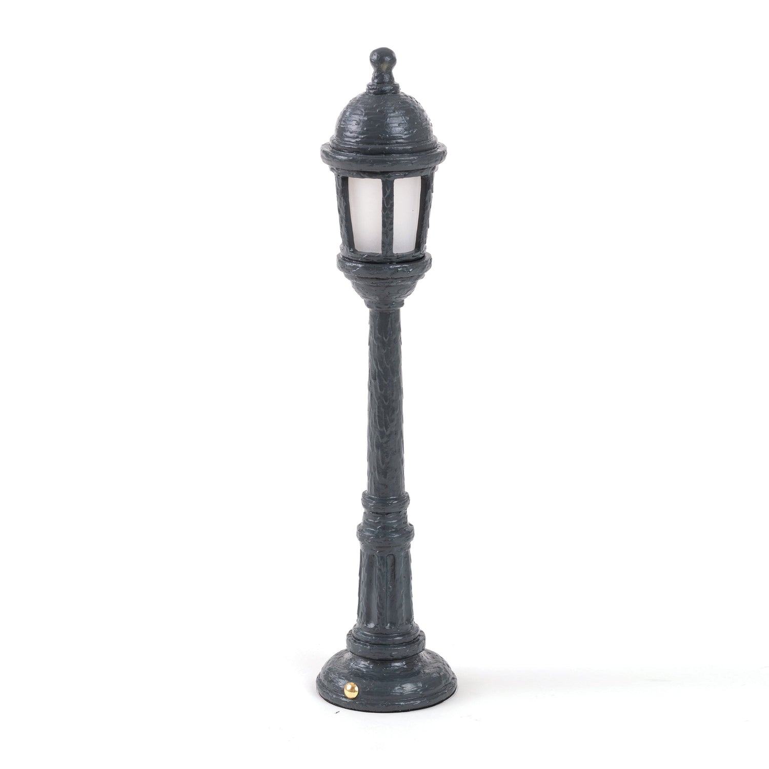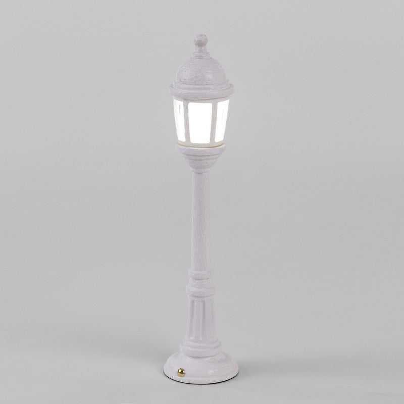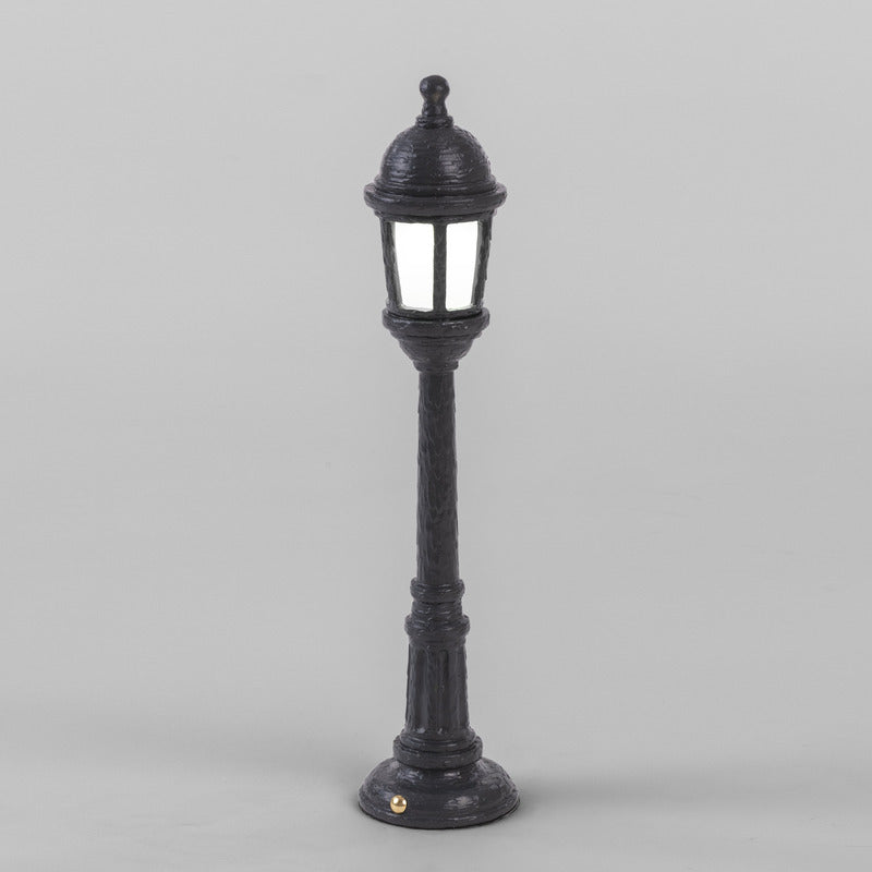 Street Lamp Table Lamp by Studio Job transforms every surface into a fantastic diorama, with a retro aftertaste. A compact version of a street lamp, it's the perfect detail to create unexpected interest with its informal and bizarre atmosphere.