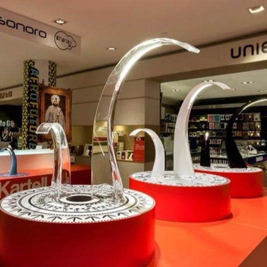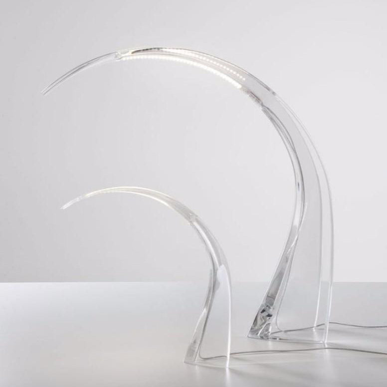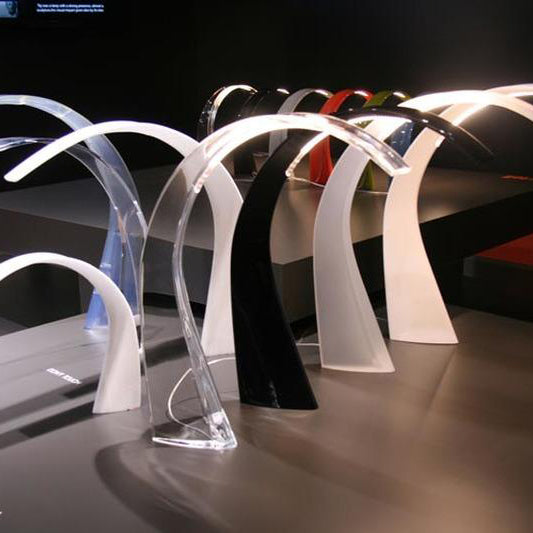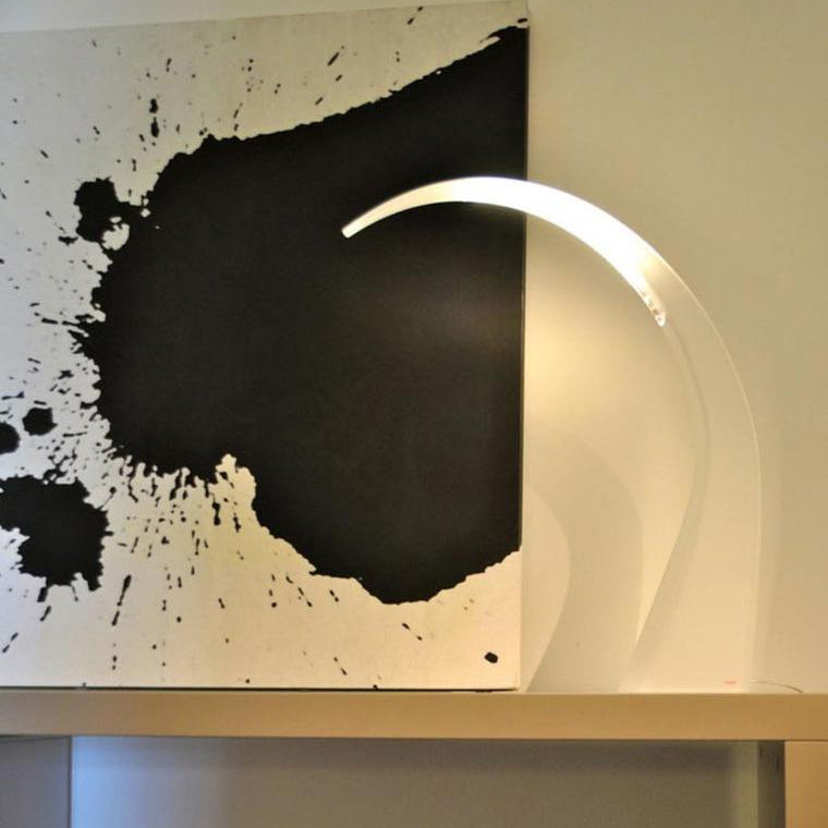 Taj, more than a lamp, is a three-dimensional manifestation, a luminous sculpture, a presence as much at home on our desk as on another piece of furniture. Although it is a table lamp, Taj abandons the articulated, jointed and mechanical stereotype in favor of a simple form serving the practical function for which it is intended. Beautiful either on or off, Taj uses LED technology to optimize and minimize the light source and at the same time it is a new step forward in meeting the corporate technical challenge producing an object through unique know-how.