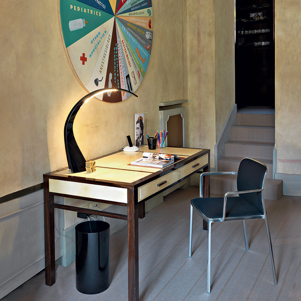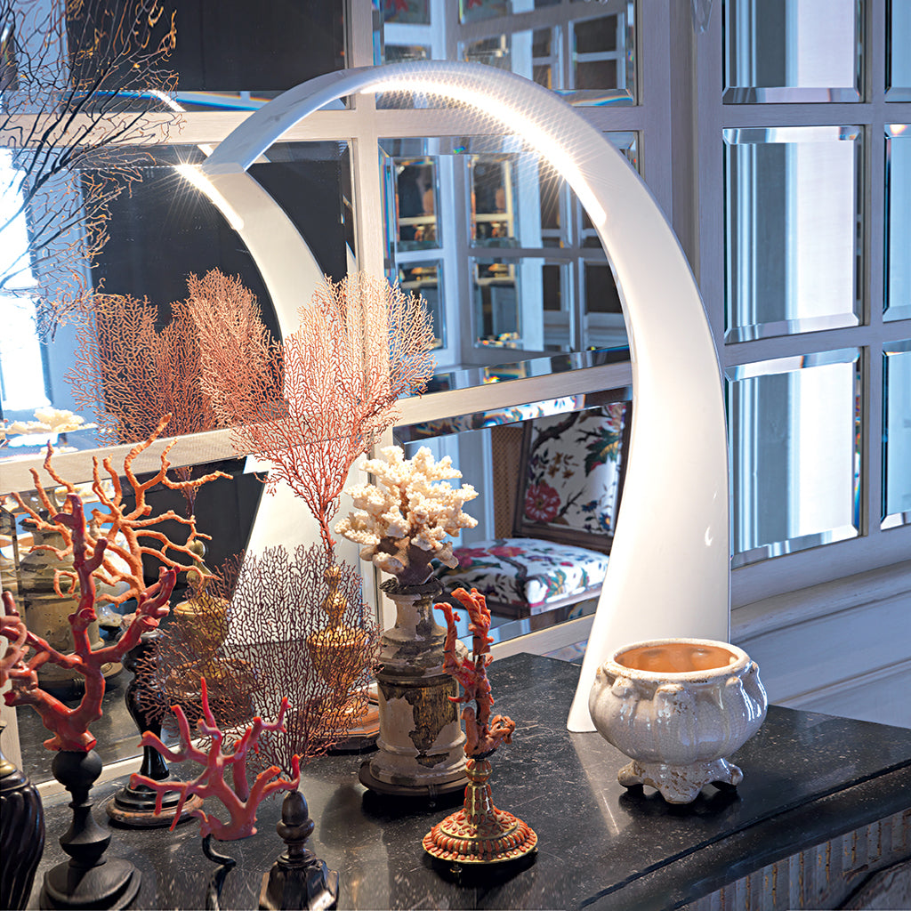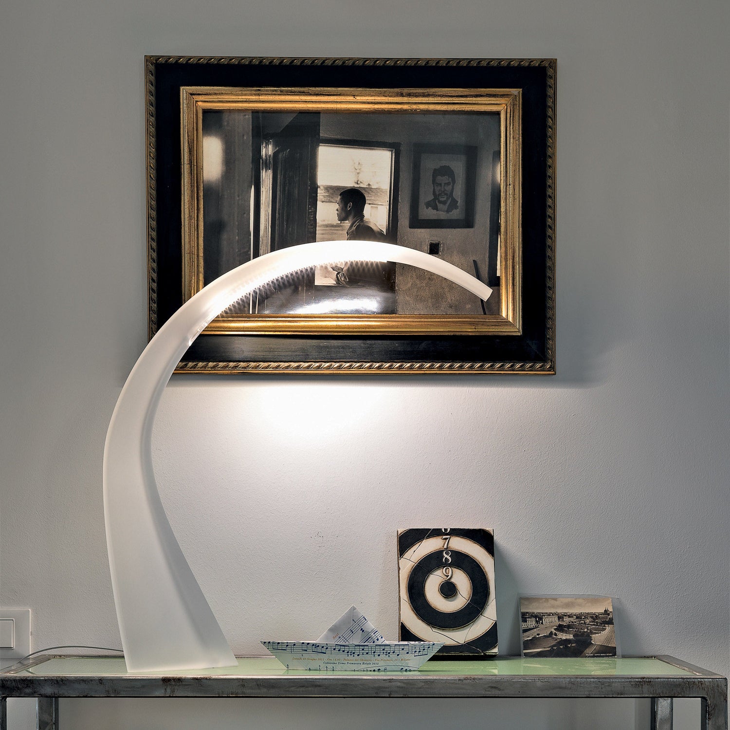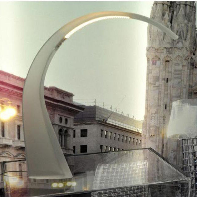 Taj, more than a lamp, is a three-dimensional manifestation, a luminous sculpture, a presence as much at home on our desk as on another piece of furniture. Although it is a table lamp, Taj abandons the articulated, jointed and mechanical stereotype in favor of a simple form serving the practical function for which it is intended. Beautiful either on or off, Taj uses LED technology to optimize and minimize the light source and at the same time it is a new step forward in meeting the corporate technical challenge producing an object through unique know-how.
