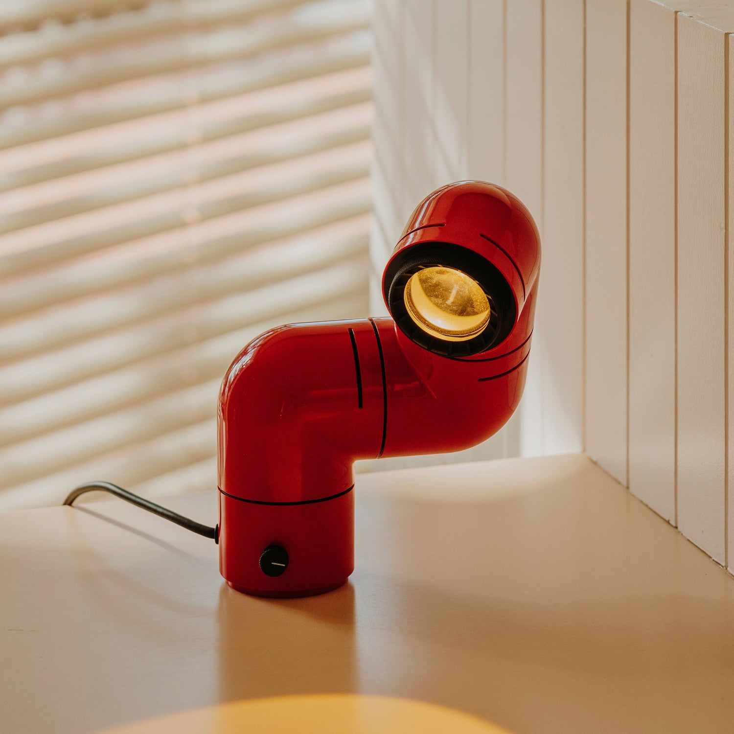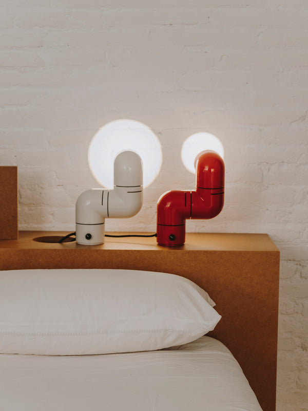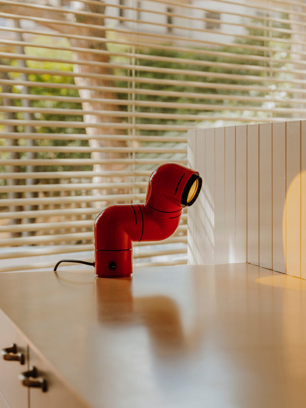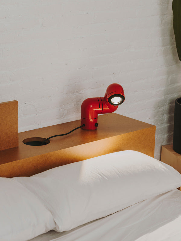 Tatu takes us back to carefree days, when consumer goods came to European middle classes and their children boldly started a huge aesthetic revolution in which everything was contorted, from Andy Warhol to The Beatles to Mary Quant. Everything could be expressed differently. Like a compact flexo, Tatu's mechanical body was conceived in three sections that can rotate independently to adapt its use for a shelf, on a desk, on a bedside table and even as a wall lamp (fittings included).