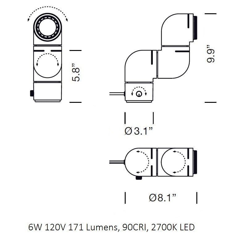 - Dimmer and switch incorporated into the luminaire