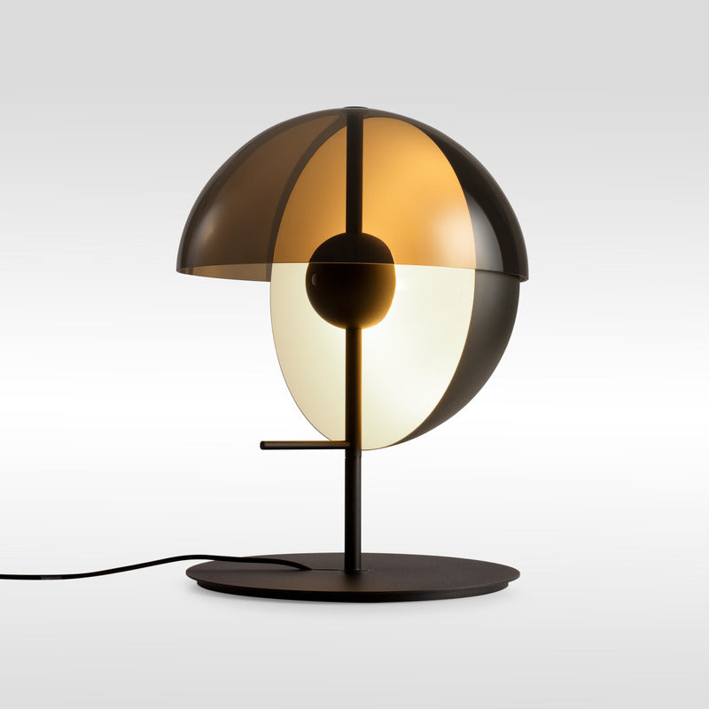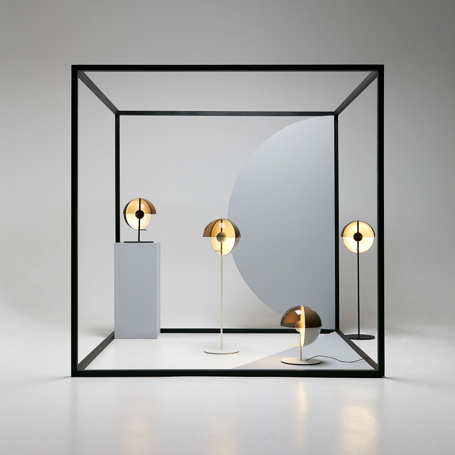 Theia's formal design is elementary and streamlined: two half-spheres, one placed horizontally and the other vertically, which intersect with each other. Just as in nature itself, these formal elements make it possible for the light from a source to be simultaneously projected, reflected, and absorbed by objects for your visual enjoyment.