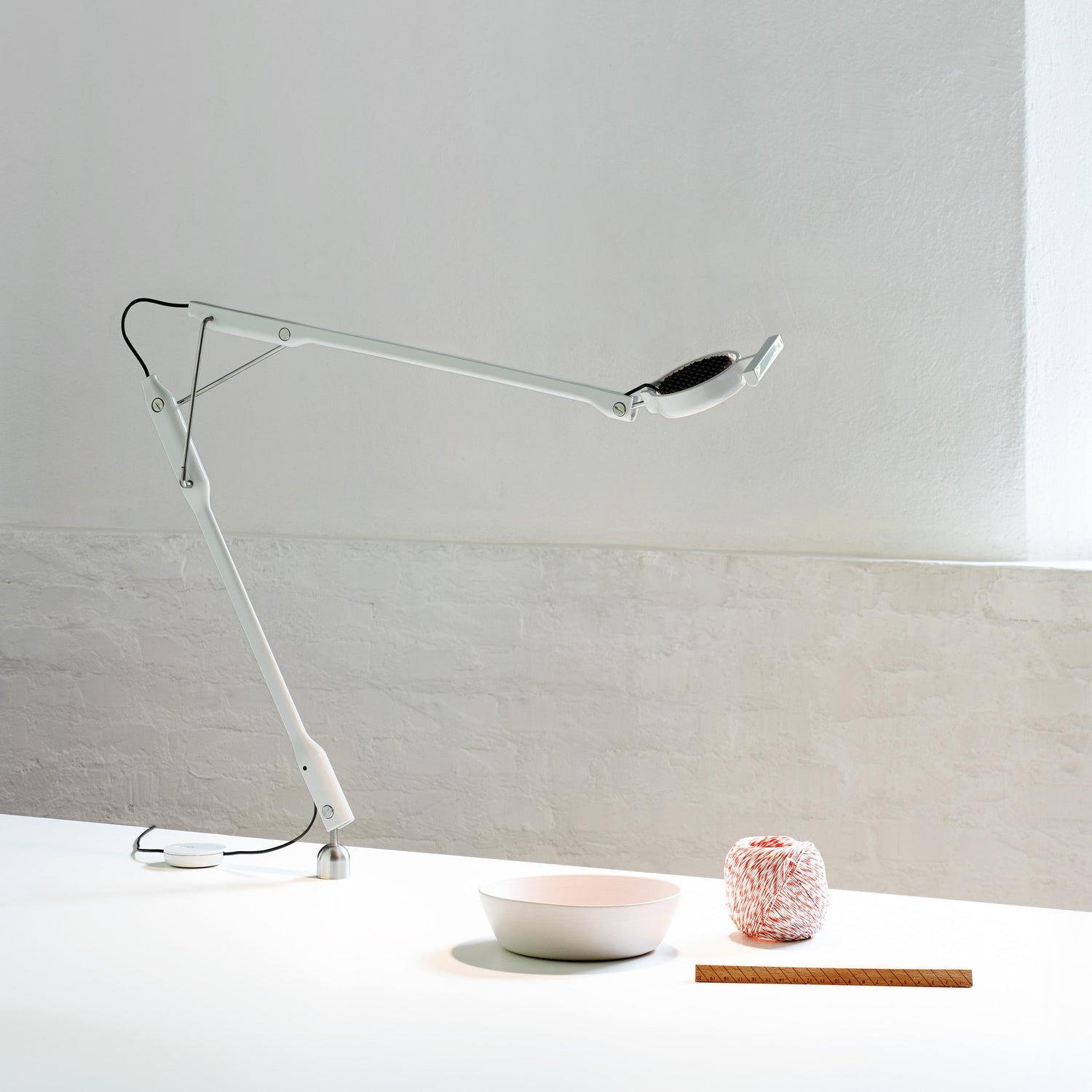 Ultra-light, ultra-jointed and ultra-technological, starting with the arms in injection-molded techno polymer, joined and organized in an original two-way pantograph system that allows for the widest range and variation of movement, always ensuring steady balance and stability. The swivel head, also in techno polymer, fitted with a practical, intuitive T-shaped grip, contains an LED lighting module of the latest generation.