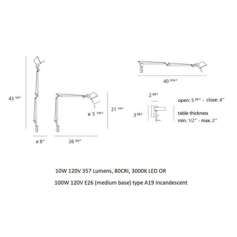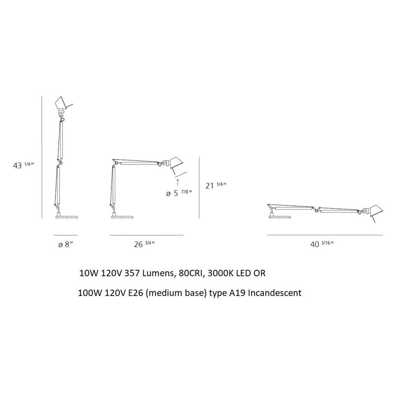 Table standing luminaires for adjustable, direct task, LED, fluorescent, halogen or incandescent lighting.