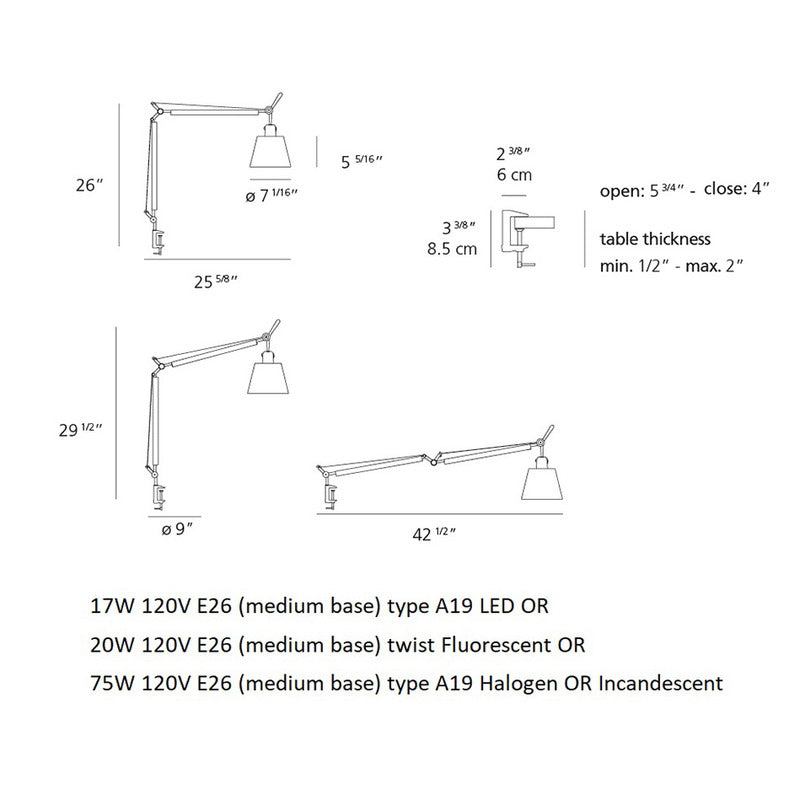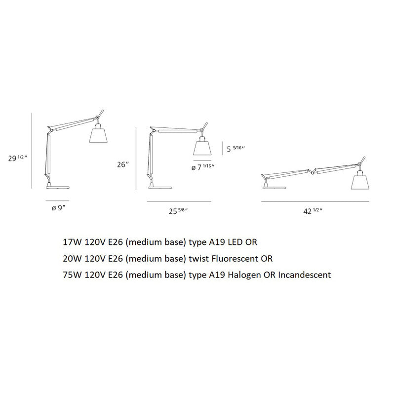 Table standing luminaire for adjustable direct and diffused task lighting.