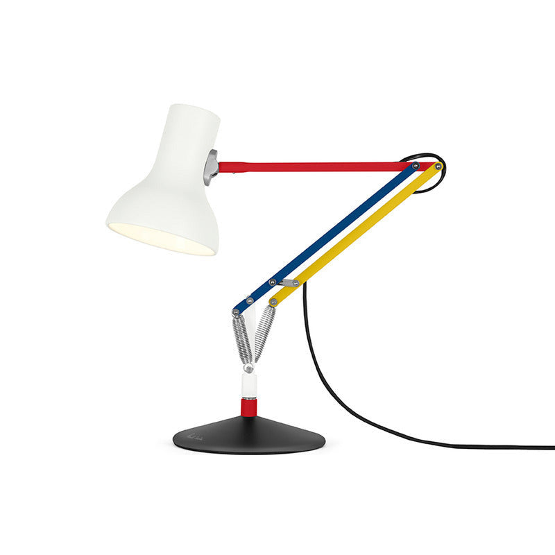 Now available in Paul Smith Edition Three colors, this scaled-down, more playful version of the Type 75 desk lamp evokes the visual vocabulary of Dutch painter Mondrian's De Stijl style of art, offering all the functionality of the larger lamp in a more compact and colorful form.