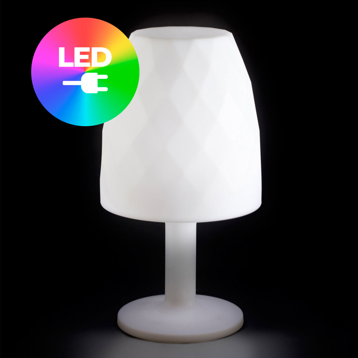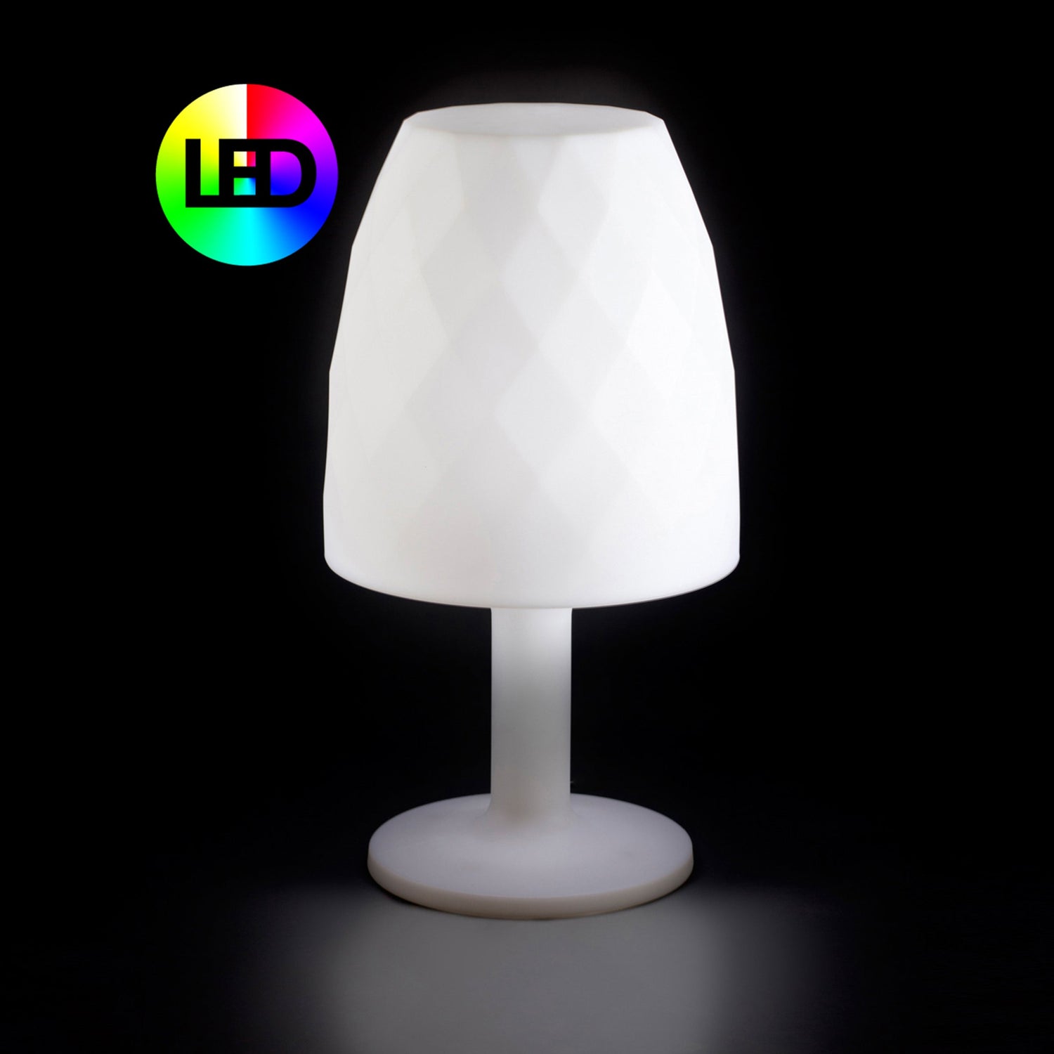 - RGB LED Cordless: Cordless and rechargeable allowing you to easily move your pieces around. Offers color changing illumination, choose from white, yellow, green, red, light blue, blue or pink and use the included remote to change the colors as you desire to create a completely different environment. Includes charger: Input 100-240V AC 50-60Hz 150mA/Output 4.2V DC 250mA. Battery (included): Li-Ion 3.7v 700mAh. Provides 5-6 hours of operation.