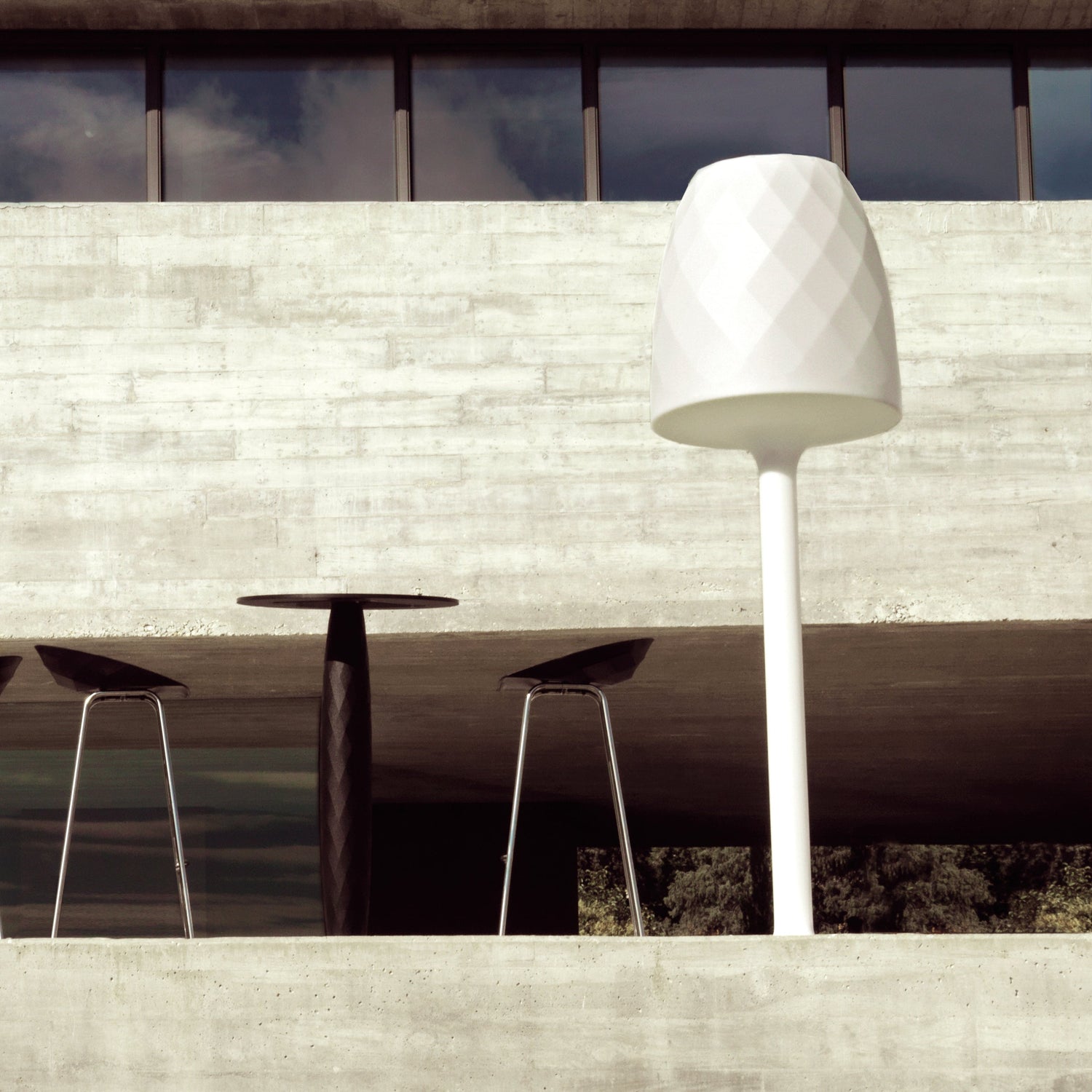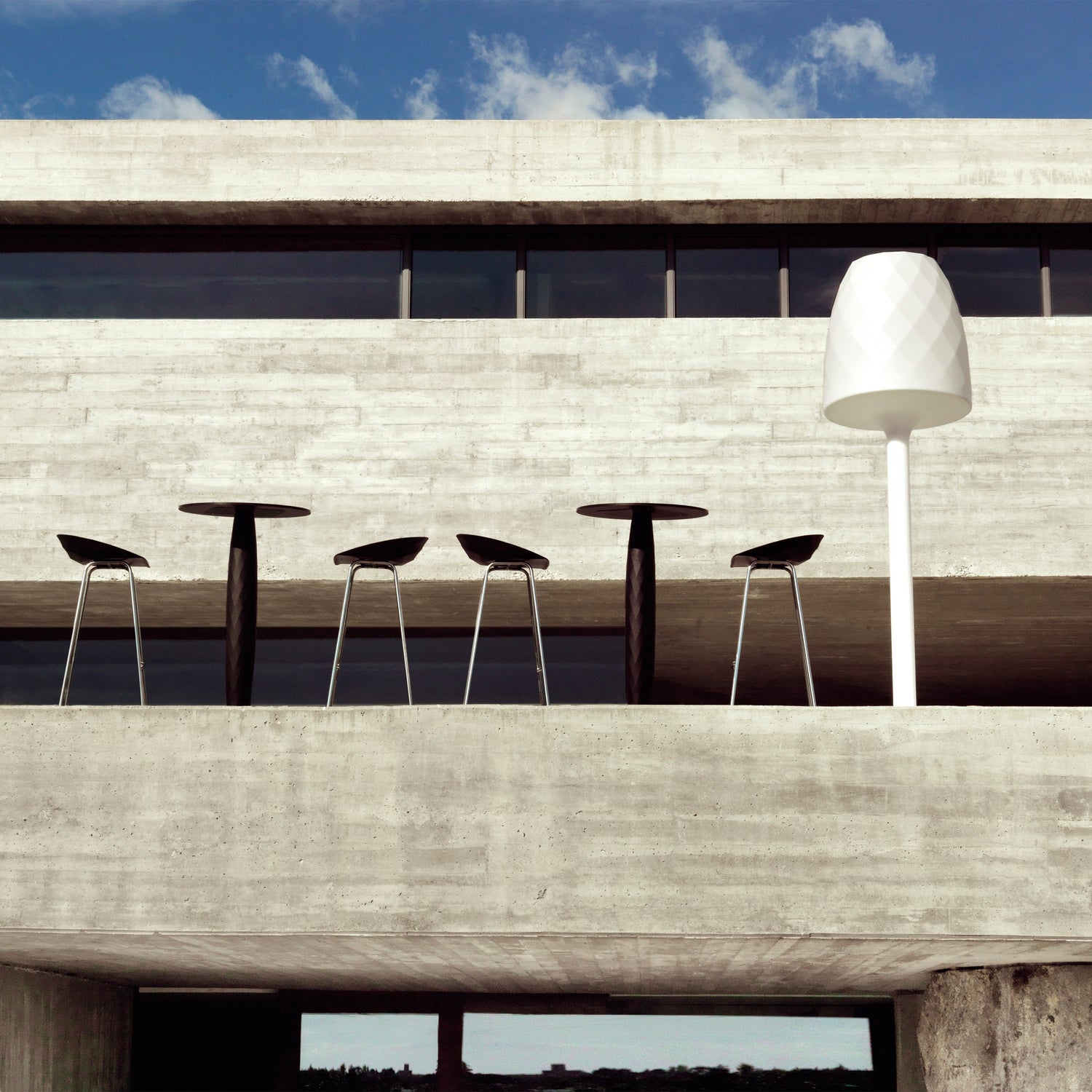 VASES includes planters, furniture and lighting created by the Valencian designer JM Ferrero. The pieces are inspired by the diamonds at obtaining some pieces of clear shapes and style, with a great visual impact. A new set of stool and table joins the collection, expanding its possibilities of creating environments IN & OUT. The VASES bar stool footrest and base are made of stainless steel. The seat made of injected plastic has the original forms of the collection inspired by the shape of the diamonds. The bar table has a round steel base and a central support of polyethylene. The top of the table is made of HPL and It is available in a wide range of colors for indoor and outdoor spaces. The material and finish of these new pieces allow high customization and intense use.
