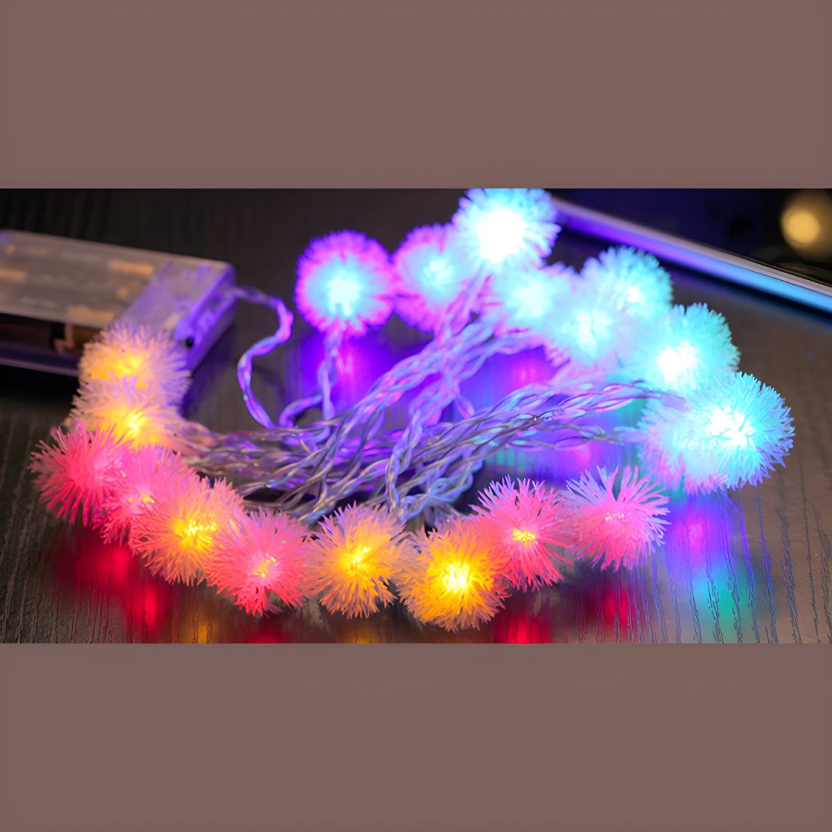 White Pompom LED String Light Modernism Plastic Solar Festive Light for Outdoor