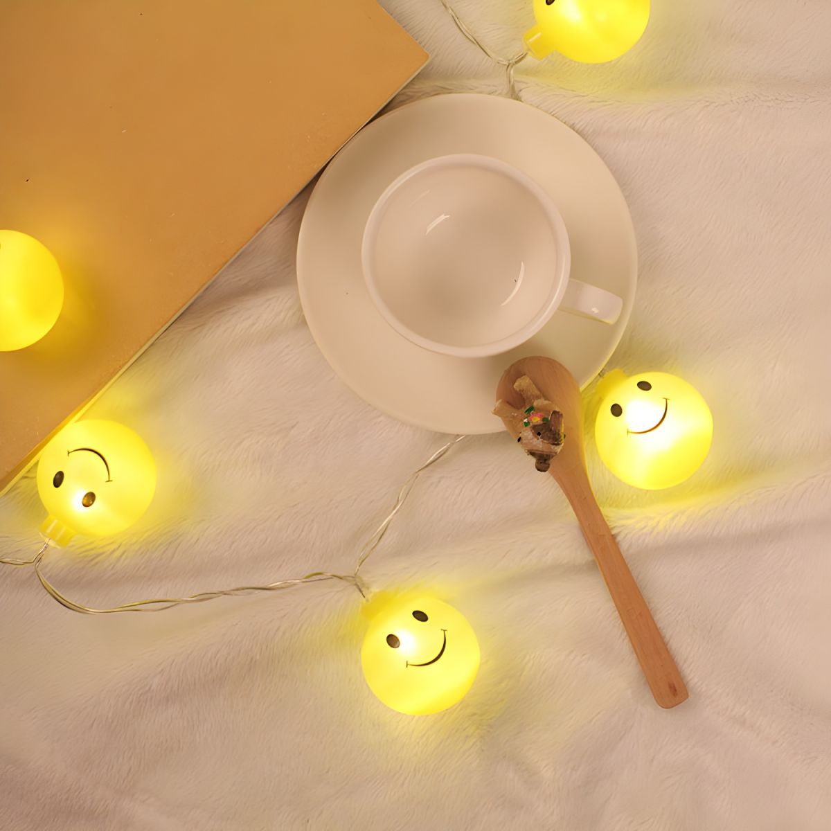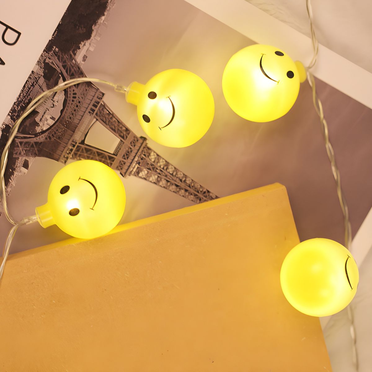 Yellow Smile Face Light String Contemporary 20/40 Lights Plastic LED Fiesta Lamp for Cafe. 8.2/16.4 Ft