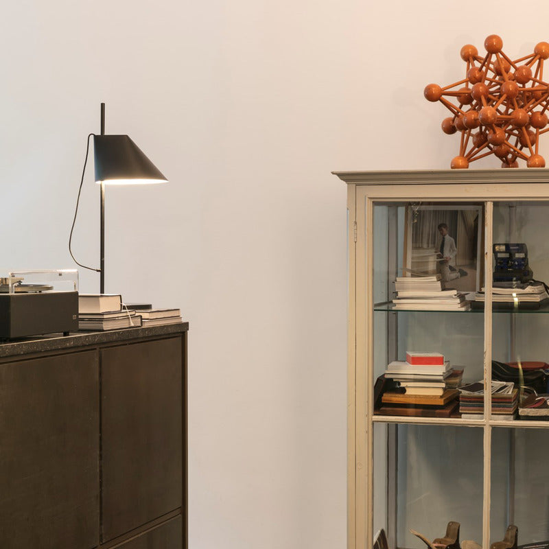 Yuh is the phonetic form of 'you', the letters represents the sound made by the voice to say you. One of the essential features of the lamp is to be personal. The light is flexible and taking up little space. It can rotate, rise and lower, illuminating and creating ambience in the desired area. A lamp created just around you. The shade is determined geometrically from the functional movement that the screen performs on the vertical pipe. A minimal shape created from a circle to a line.