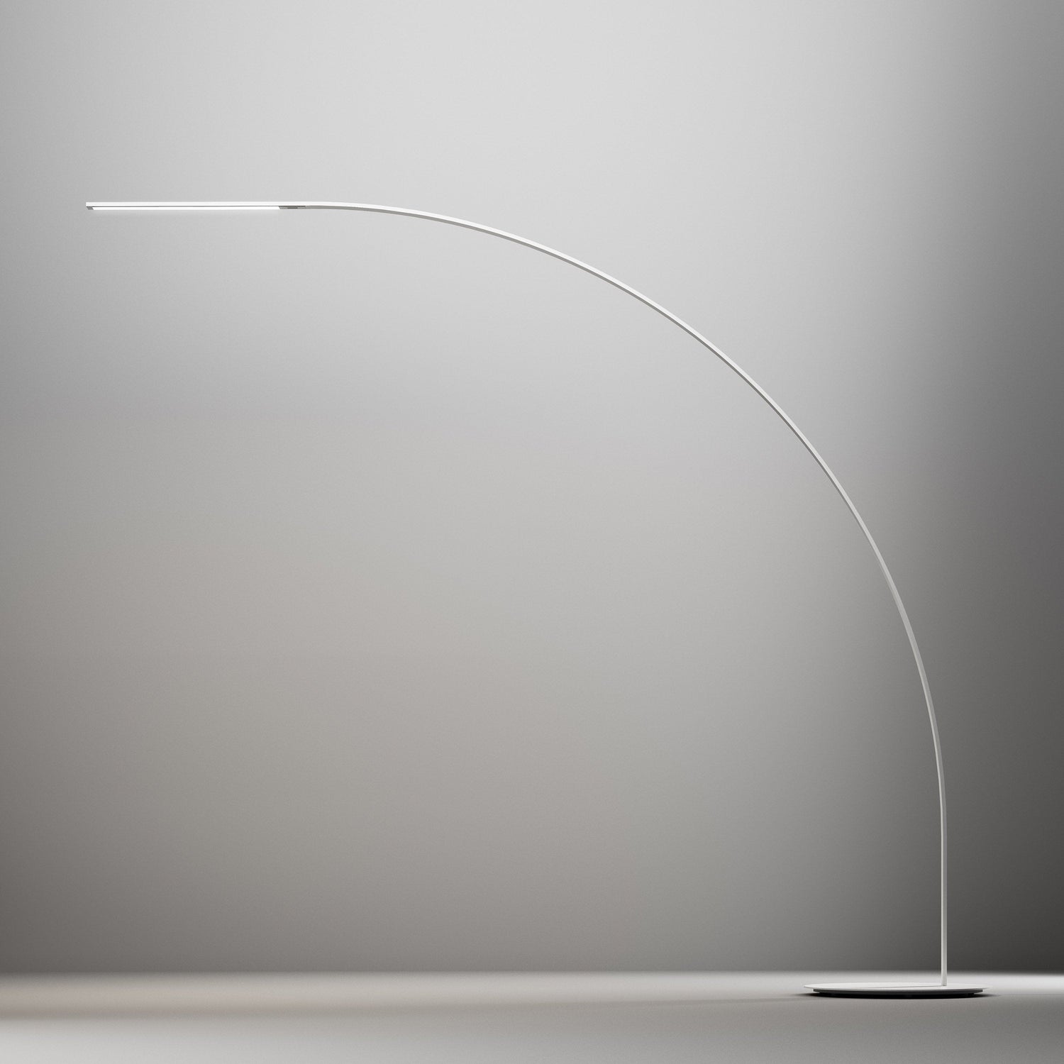 Yumi means bow in Japanese. Today, this simple shape is re-interpreted by Shigeru Ban for FontanaArte. Its absolute harmony is destined to turn into a new universal classic. Yumi is both delicate and strong: a clean design and simple shape that blend into a lightweight yet sturdy structure of composite material, wrapped in a carbon fiber coat with a surface brushed to a gloss finish. 170 LEDs are discreetly sunk into the structure of the lamp minimizing the use of space and further enhancing the continuous line of the bow design. Choosing materials that are resistant to high temperatures made it possible to sink the wiring entirely inside the stem during the production process. Yumi spreads a warm downward glow which is ideal for creating an intimate atmosphere. It adds character to different interiors with its distinct but subtle personality.
